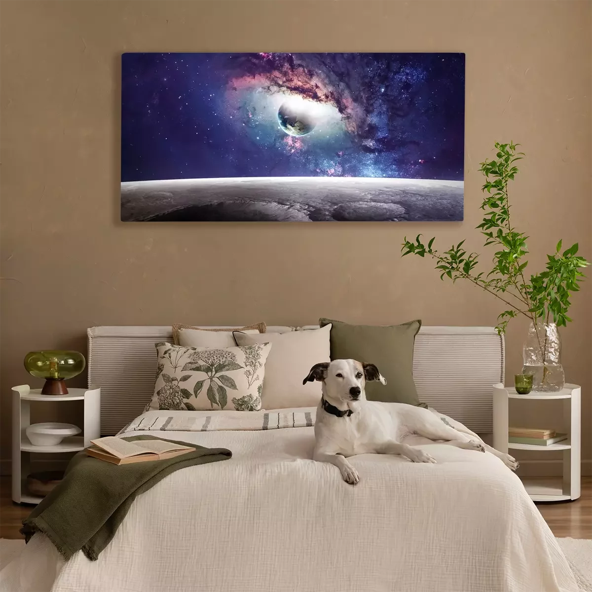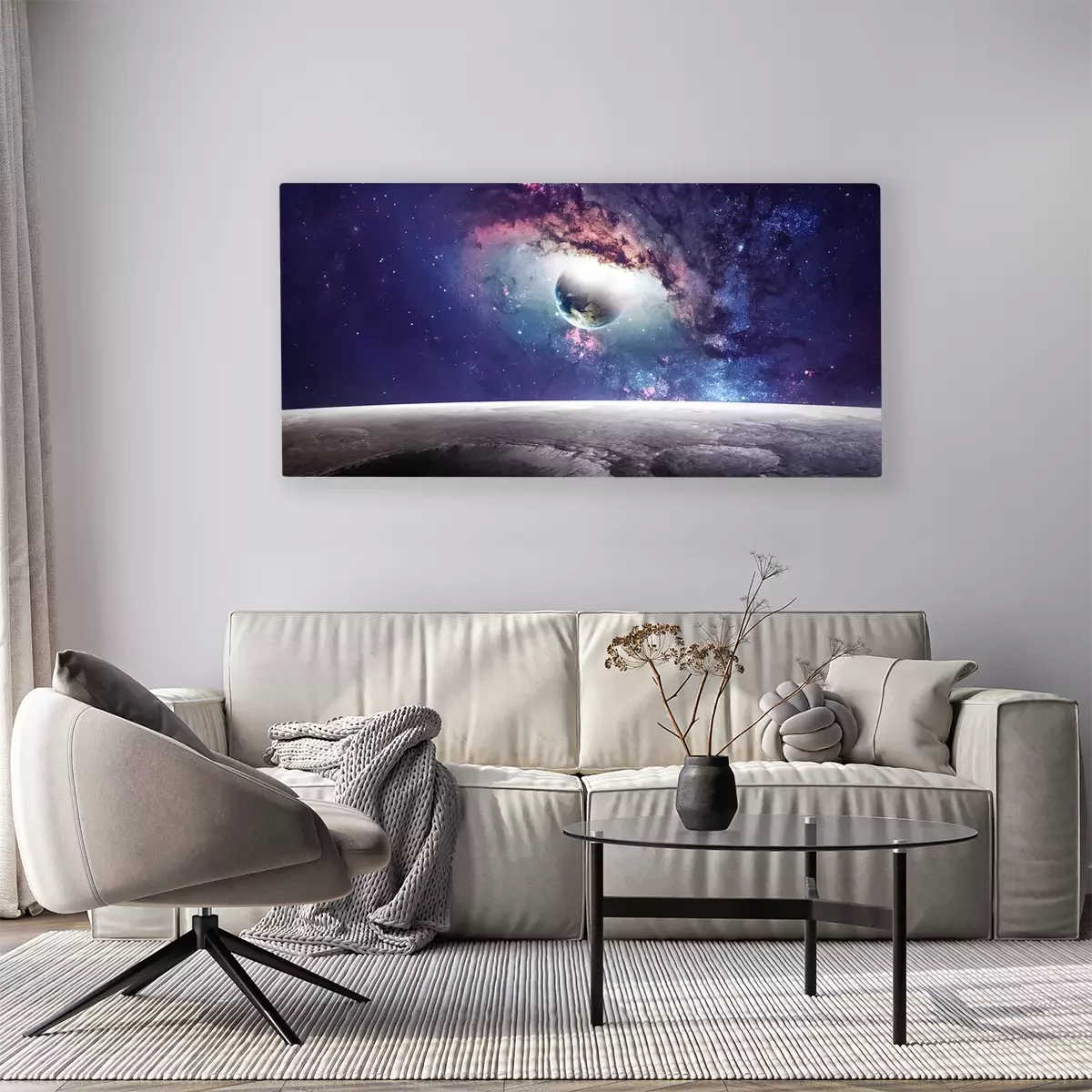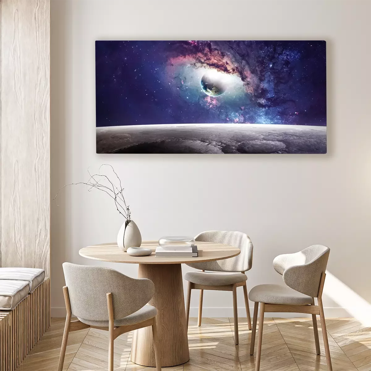 Tableau : Galaxie et planète colorées