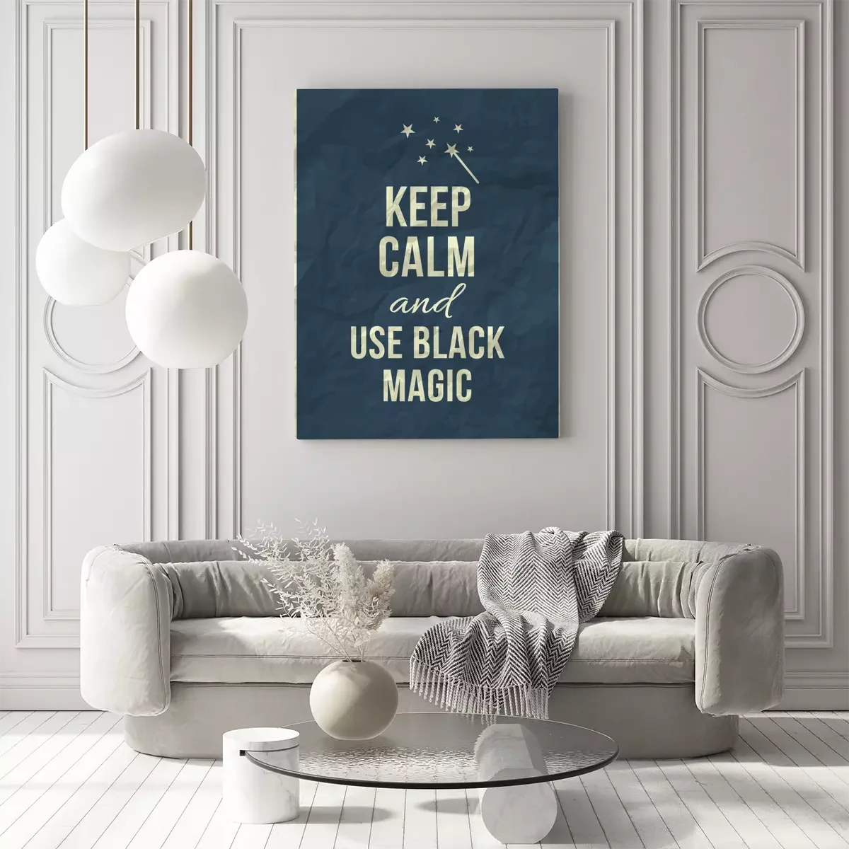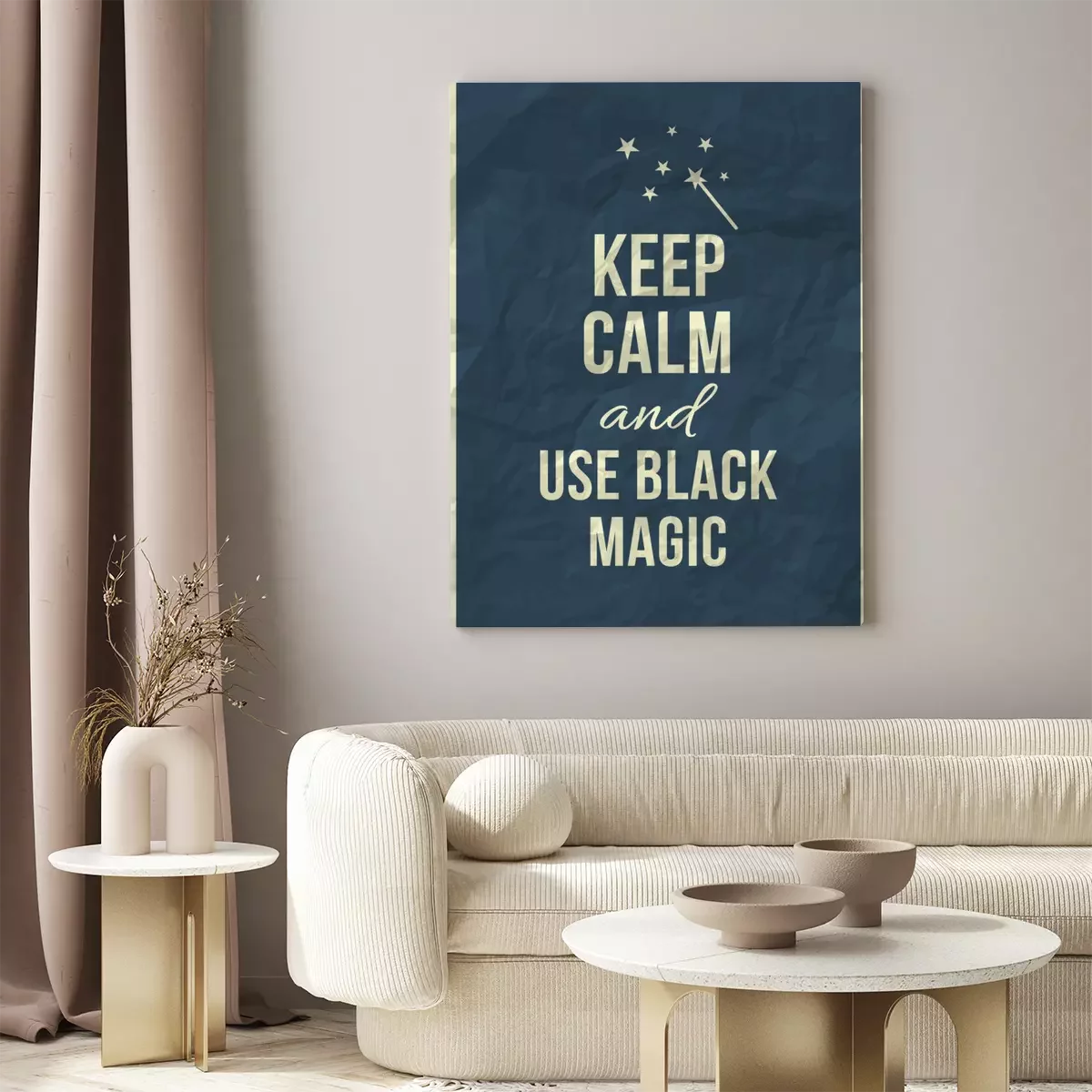 Tableau  Gardez le calme et utiliser la magie noire devis sur texture du papier froissé