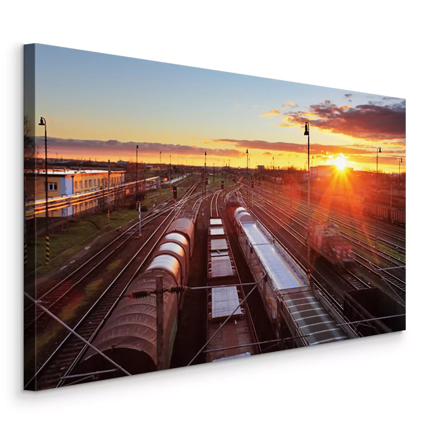 Tableau : gare de marchandises avec les trains - le transport de marchandises