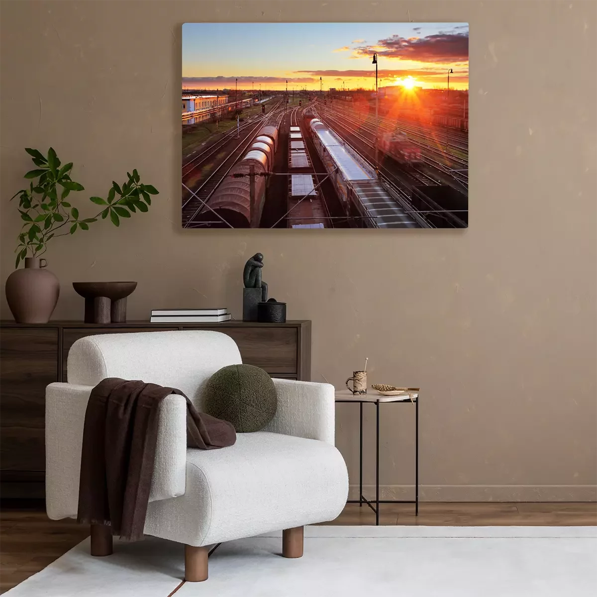 Tableau  gare de marchandises avec les trains - le transport de marchandises