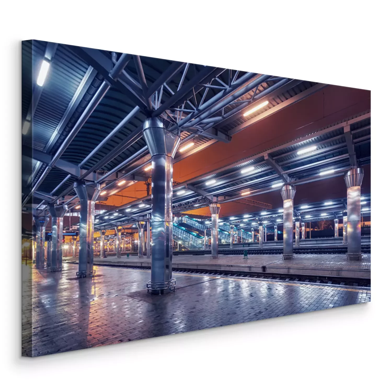 Tableau  Gare la nuit. Plate-forme de train dans le brouillard. Railroad