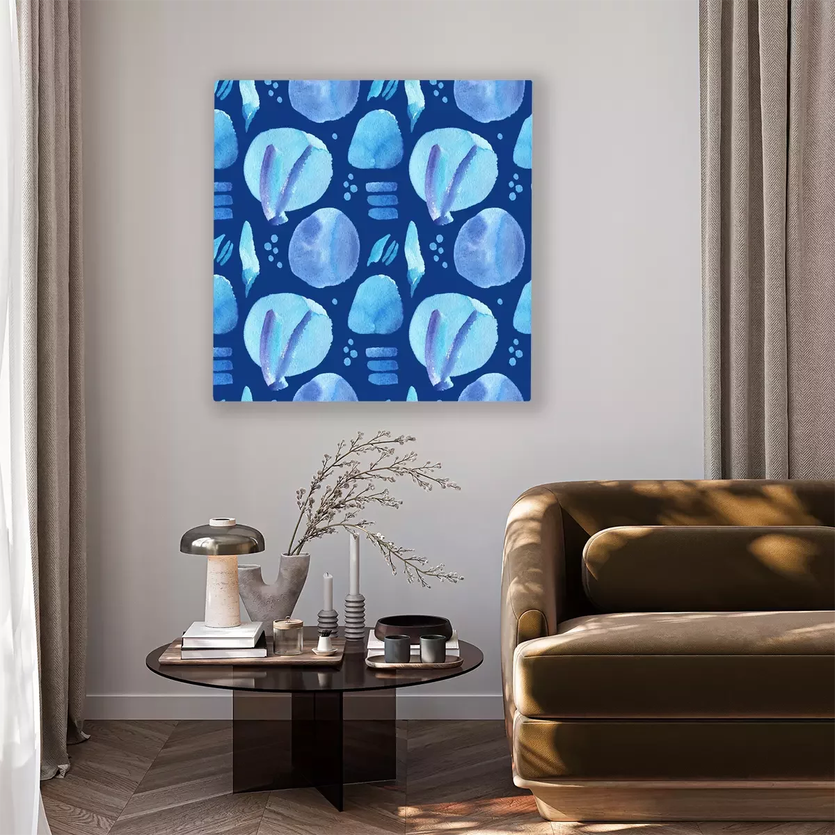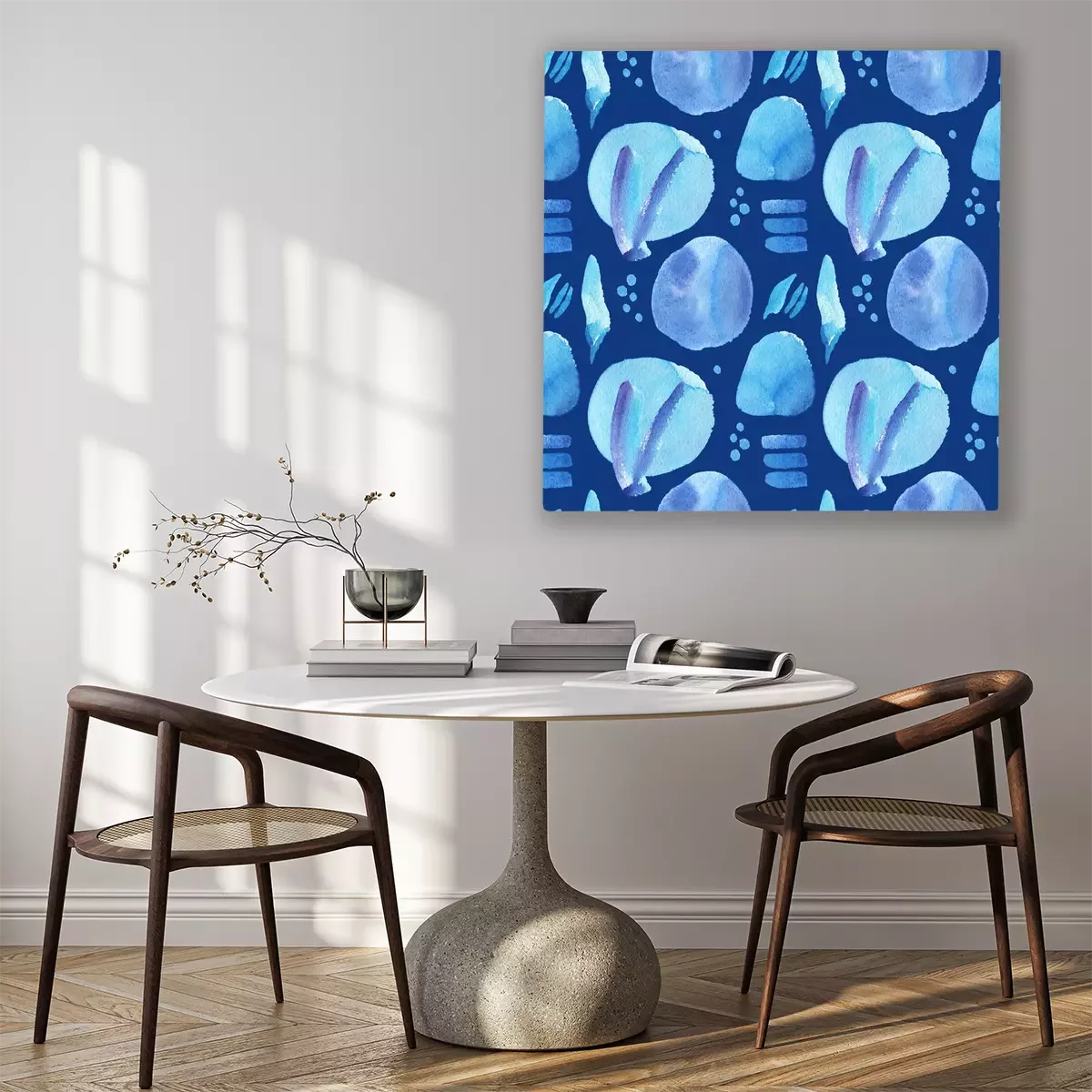 Tableau : geometric abstract blue spot blotch dot stripe vertical marine isolated pattern watercolor repeating seamless fabric textile background