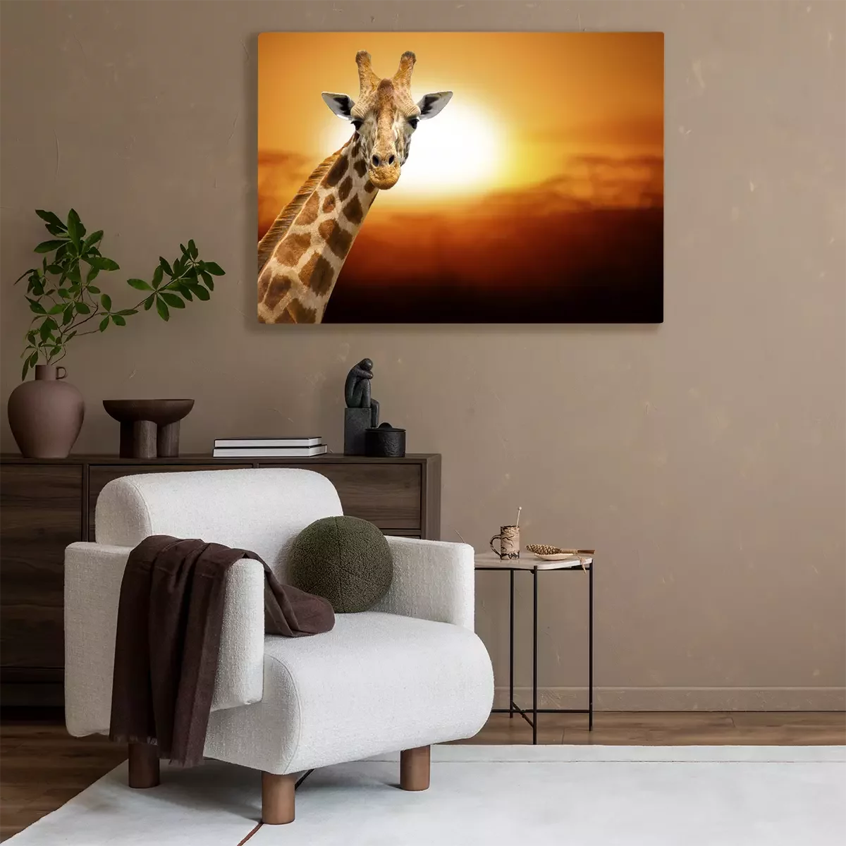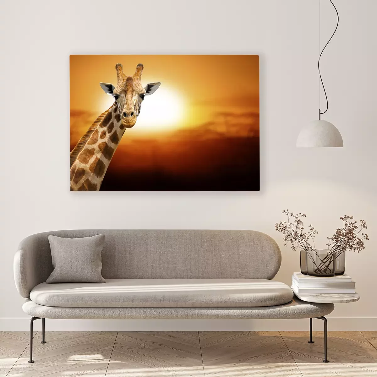 Tableau : Girafe sur fond de coucher de soleil