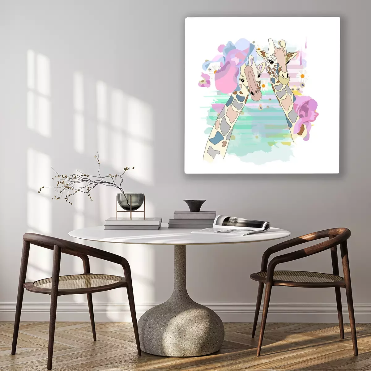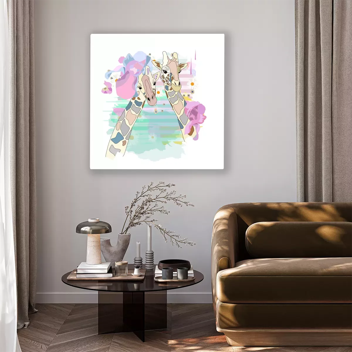 Tableau : Girafes abstraites colorées