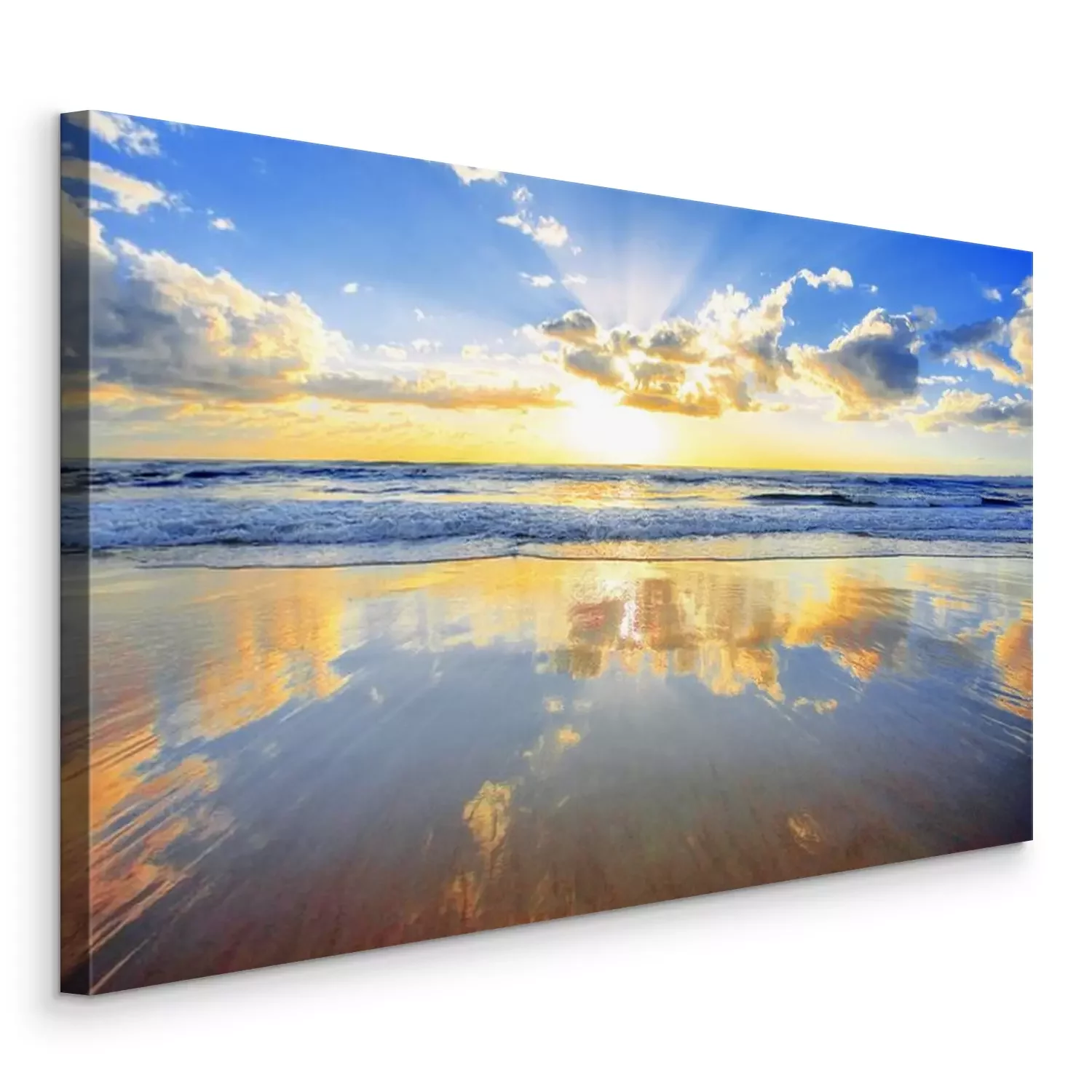 Tableau : Golden sunrise spectaculaire sur l'océan avec la plage au premier plan