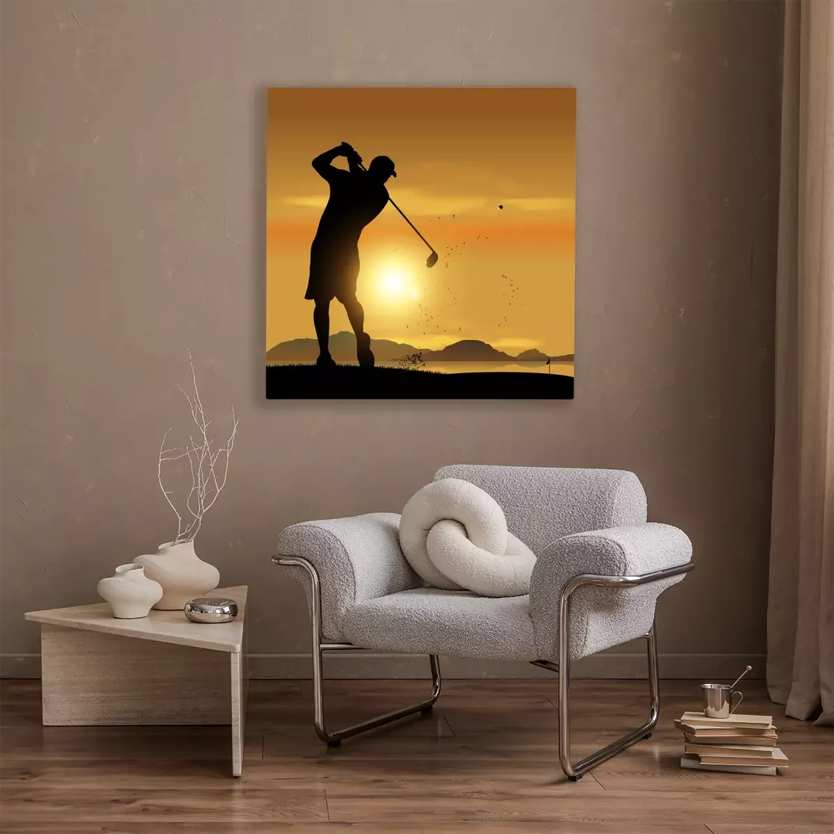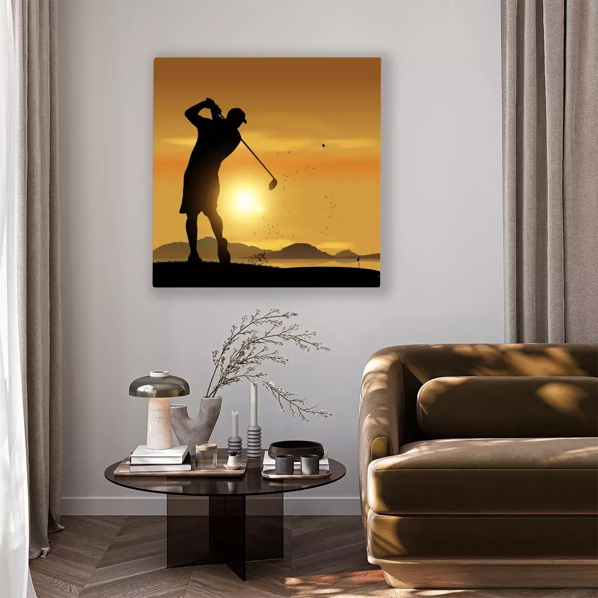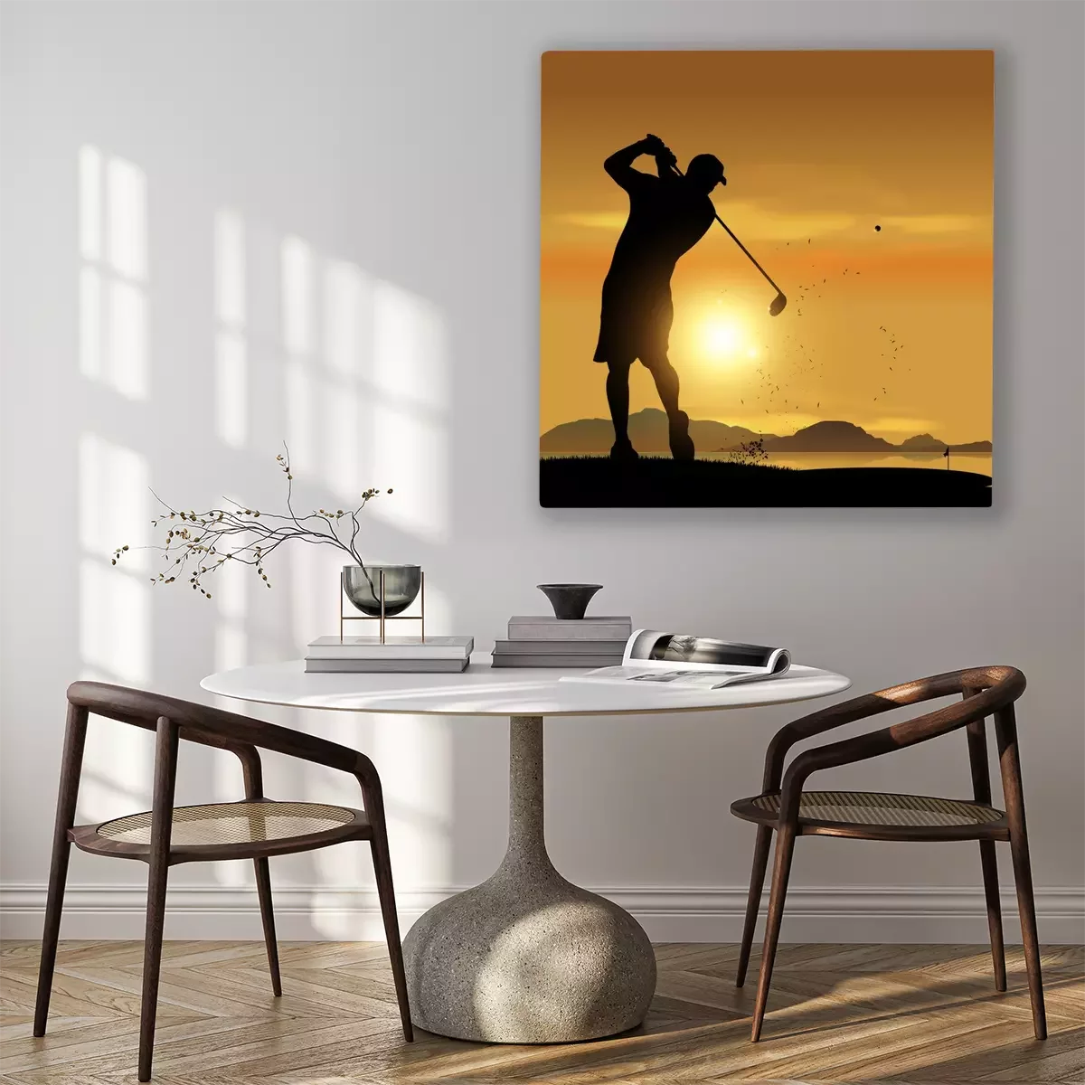 Tableau : Golfeur silhouette au coucher du soleil