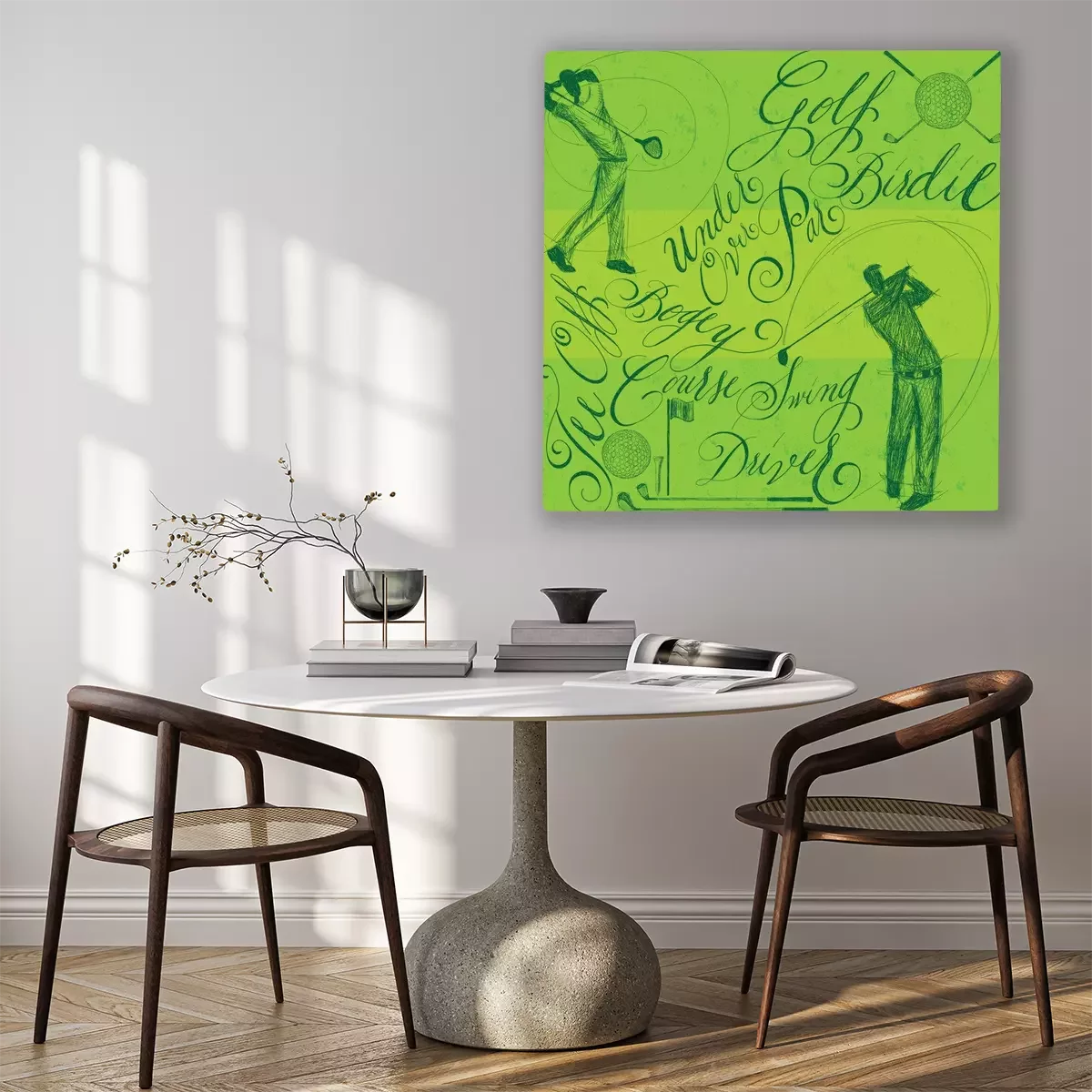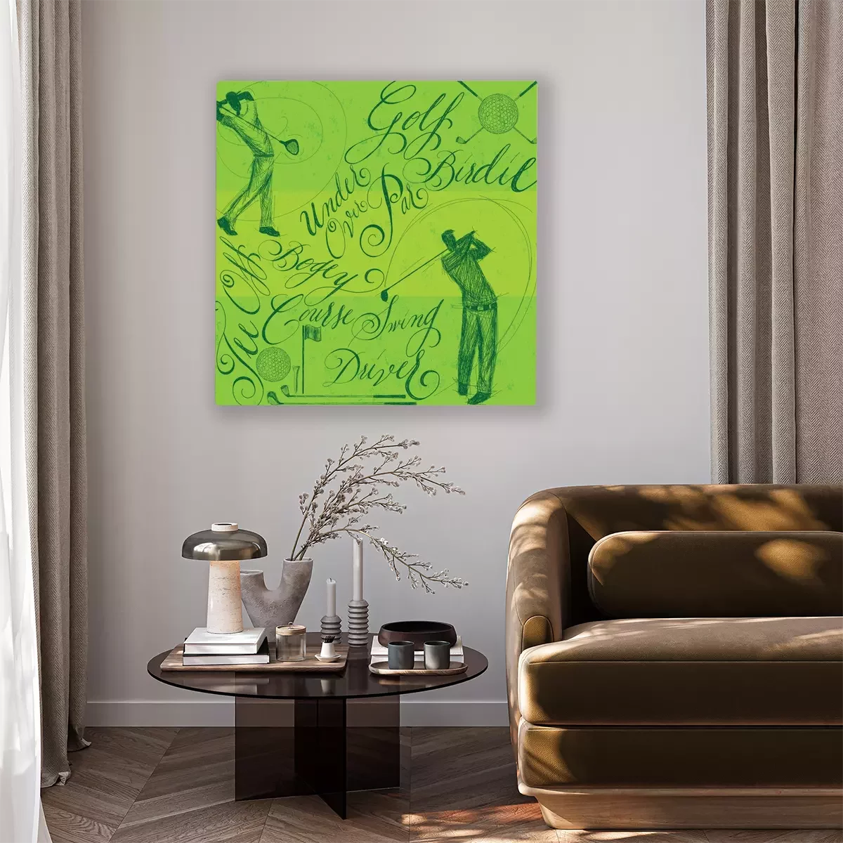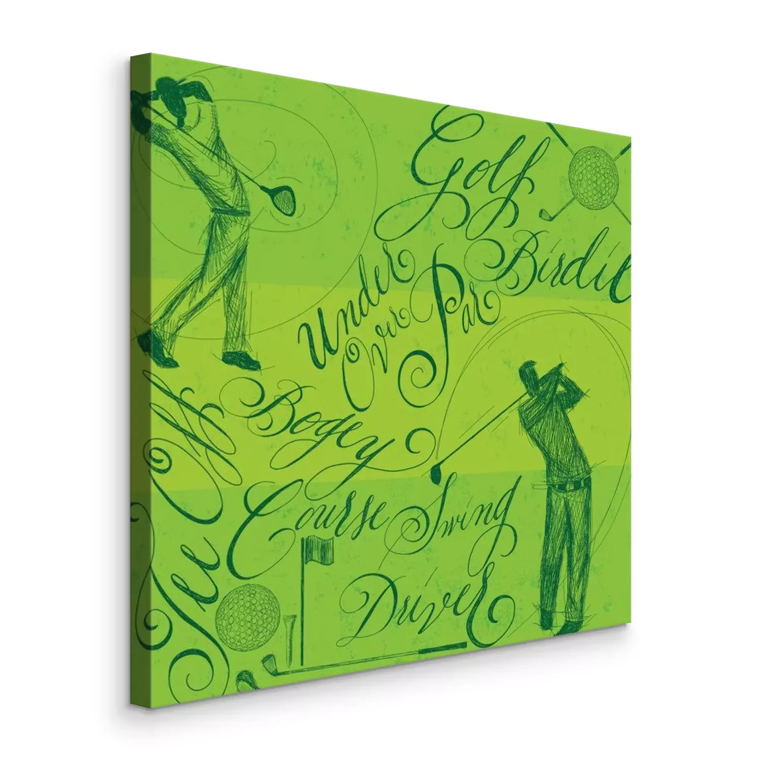 Tableau : Golfistes avec calligraphie