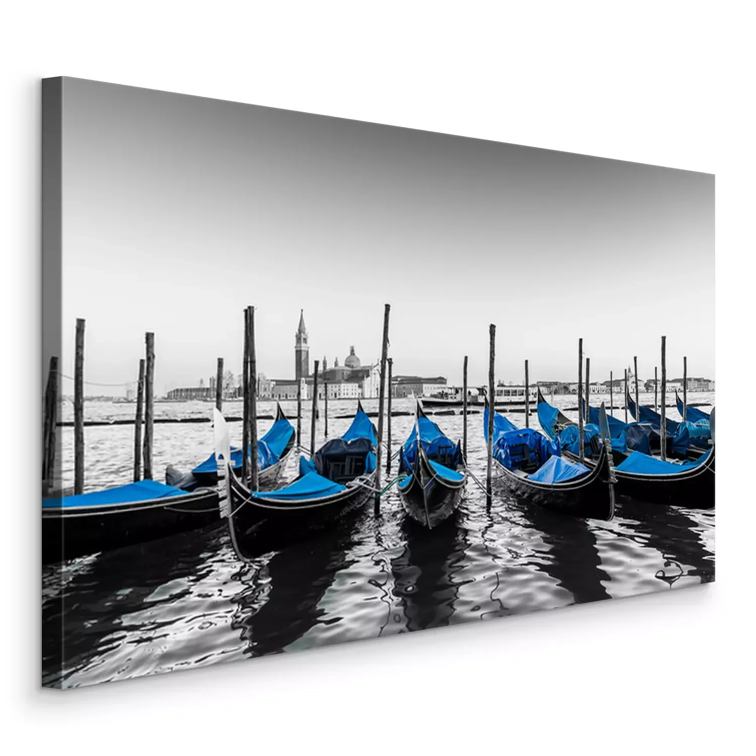 Tableau  Gondoles bleues amarrées sur pilotis