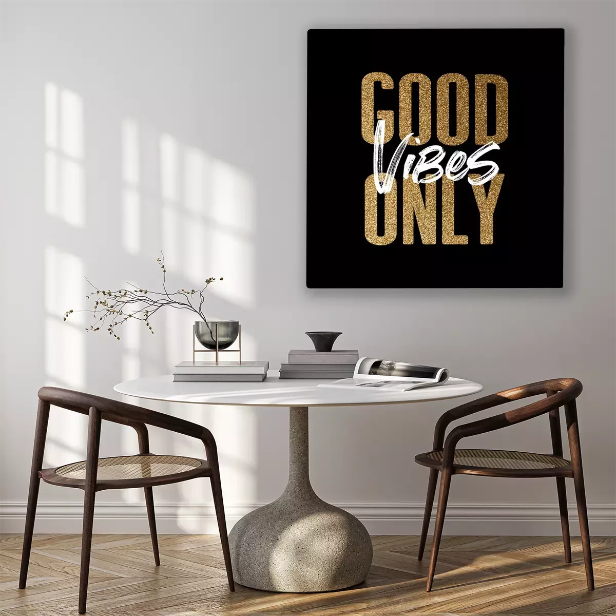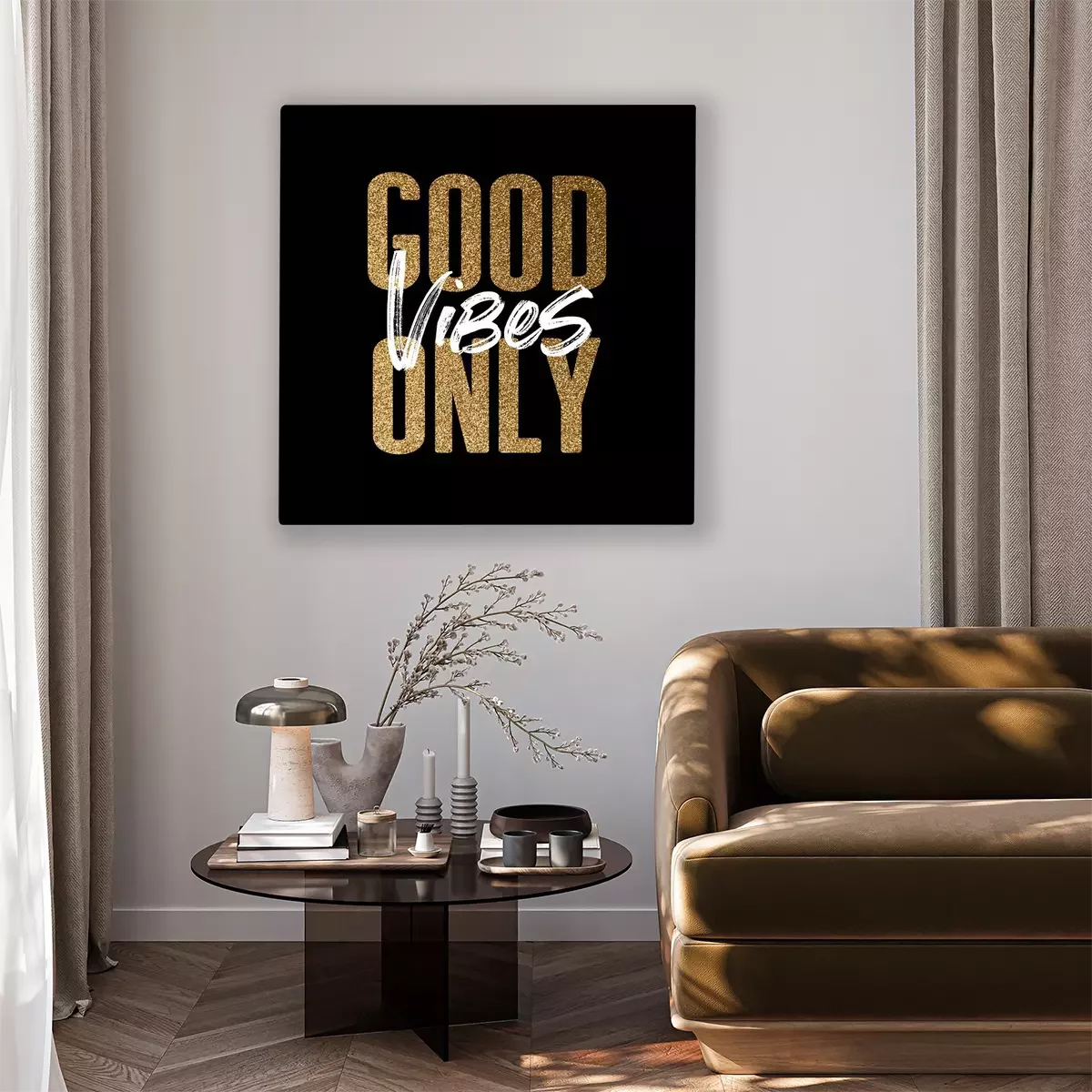 Tableau : Good vibes only, gold and white inspirational motivation quote