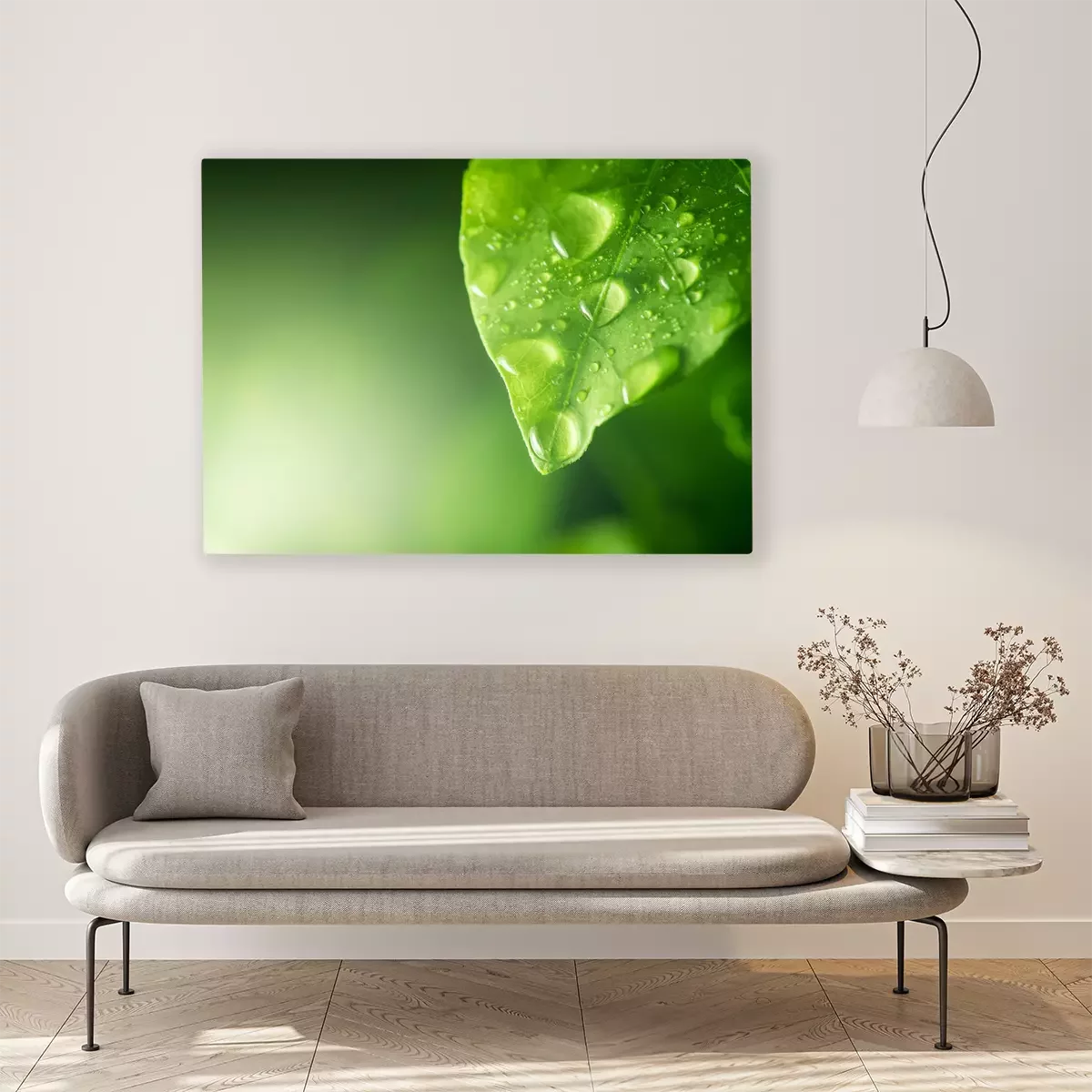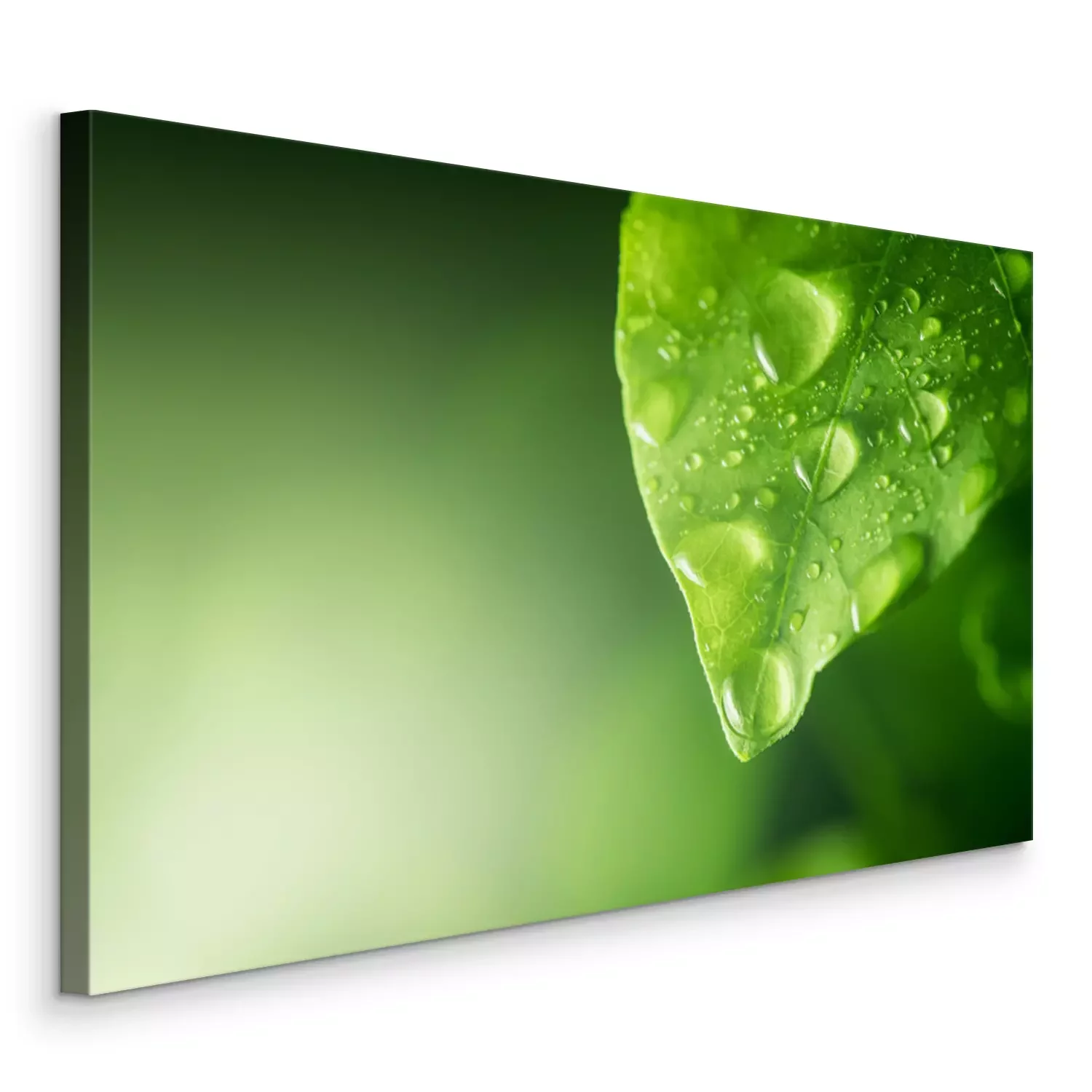 Tableau : gouttes d'eau sur la feuille verte