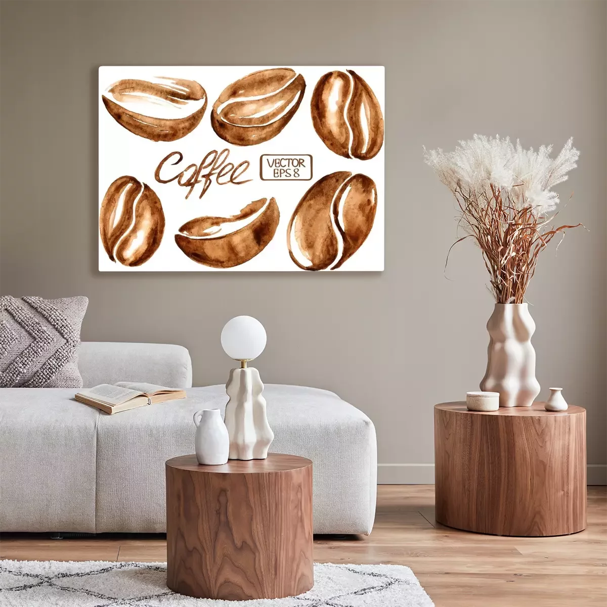 Tableau : grains de café Aquarelle icônes