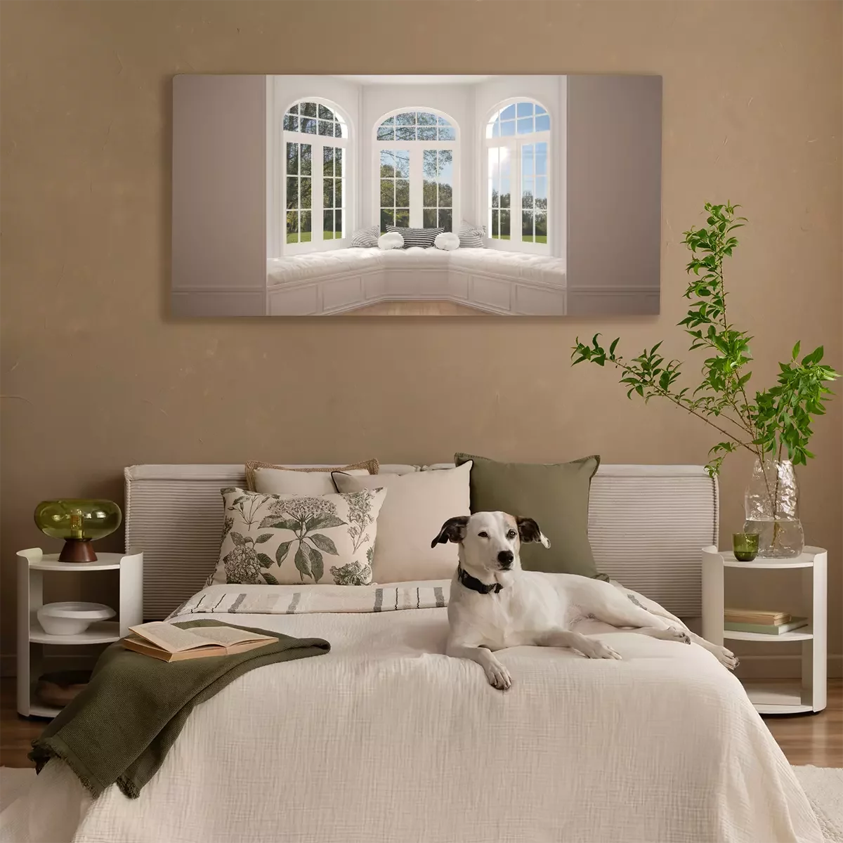 Tableau  Grand, fenêtre, jardin, pré, panorama, minimaliste, vide, espace ...