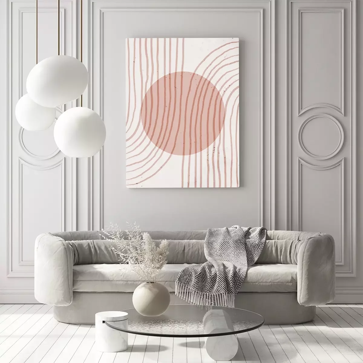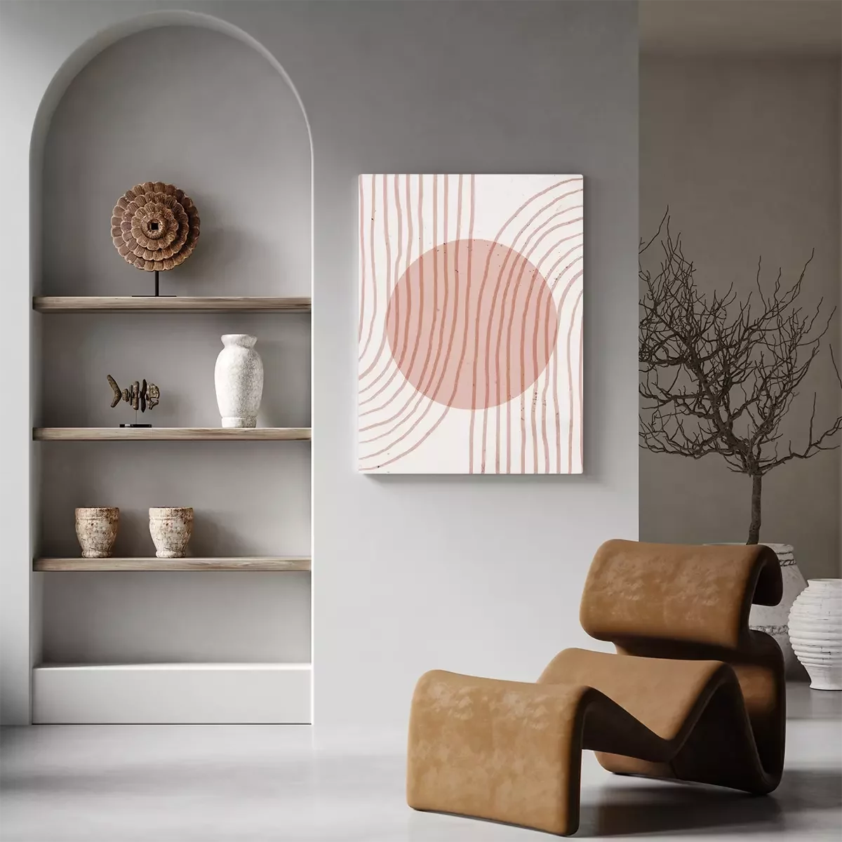 Tableau : Graphique abstrait avec des lignes roses et un cercle