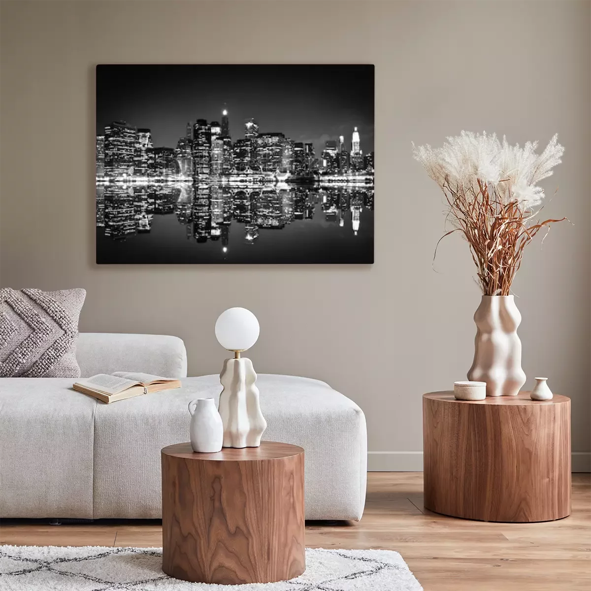 Tableau : Gratte-ciel de New York la nuit, noir et blanc
