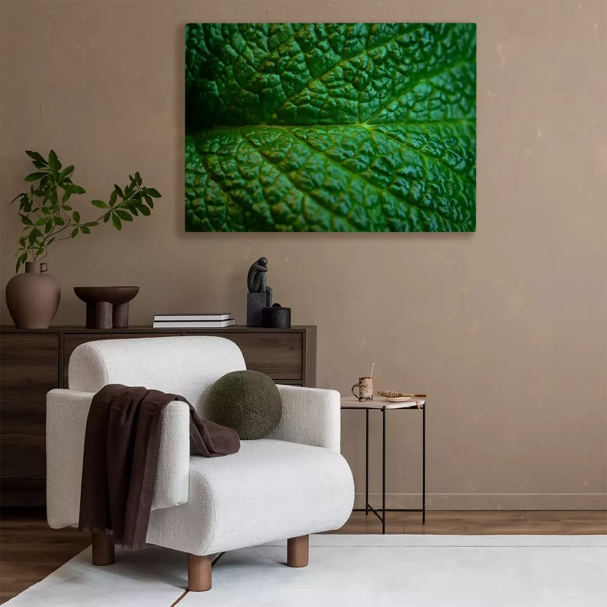 Tableau  Green fresh leaves of mint, lemon balm close-up macro shot. Mint leaf texture. Ecology natural layout. Mint leaves pattern, spearmint herbs, peppermint leaves, nature background