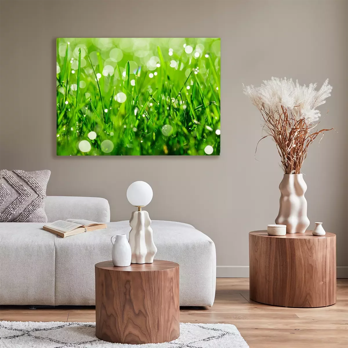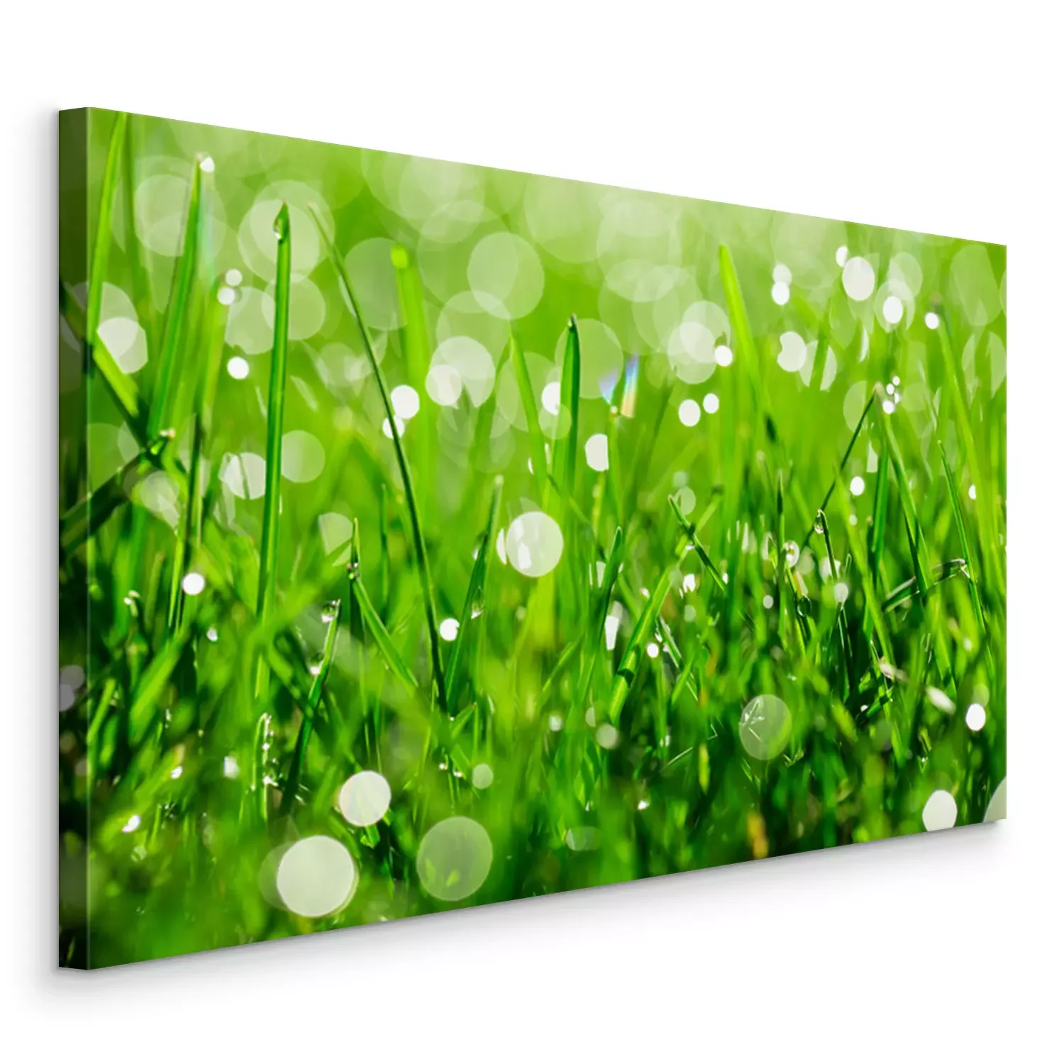 Tableau  green grass with water drops in sunlight