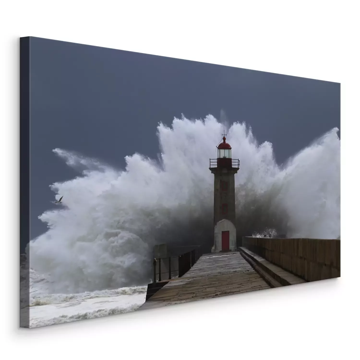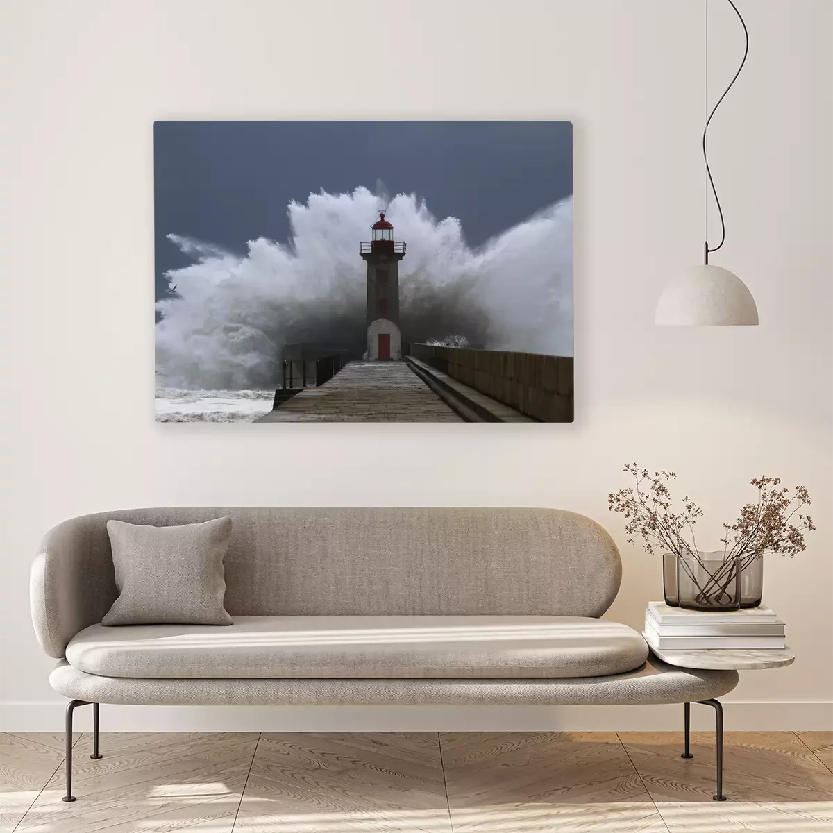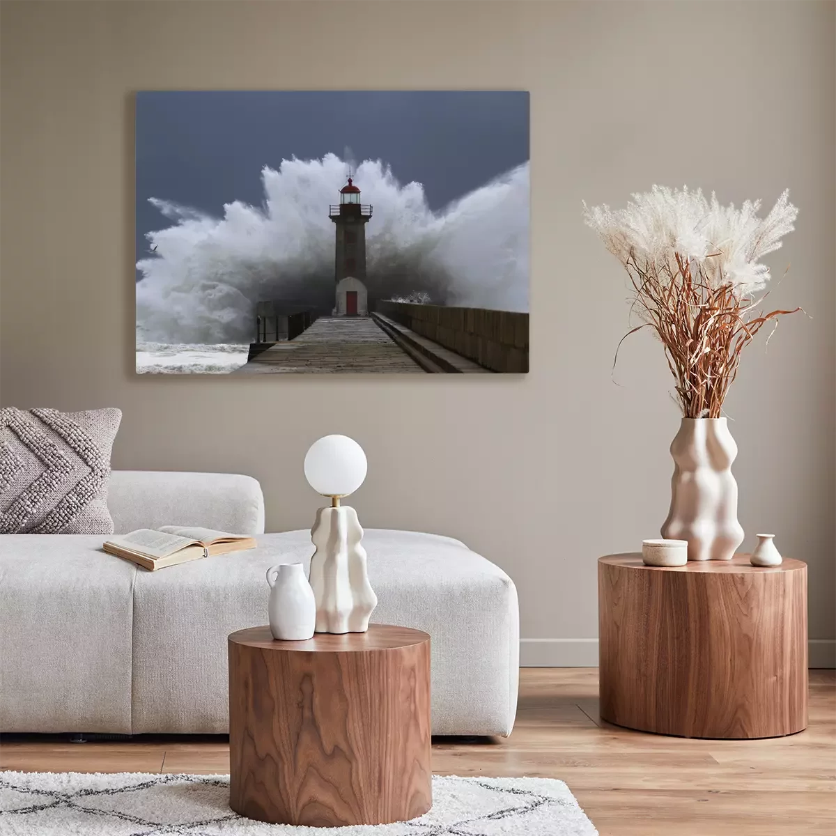 Tableau  Gros orage avec grosses vagues près d'un phare