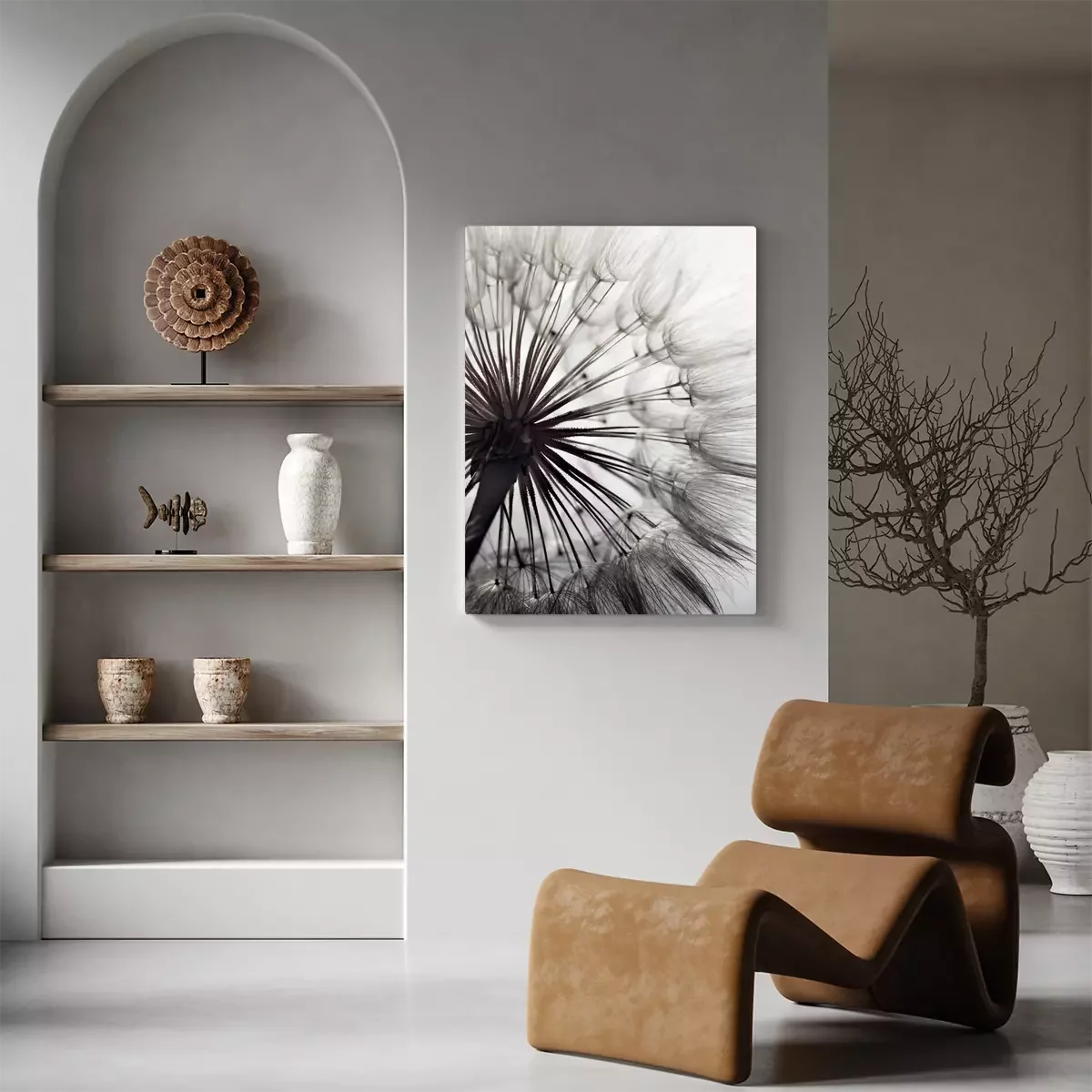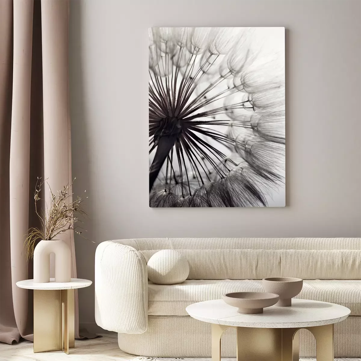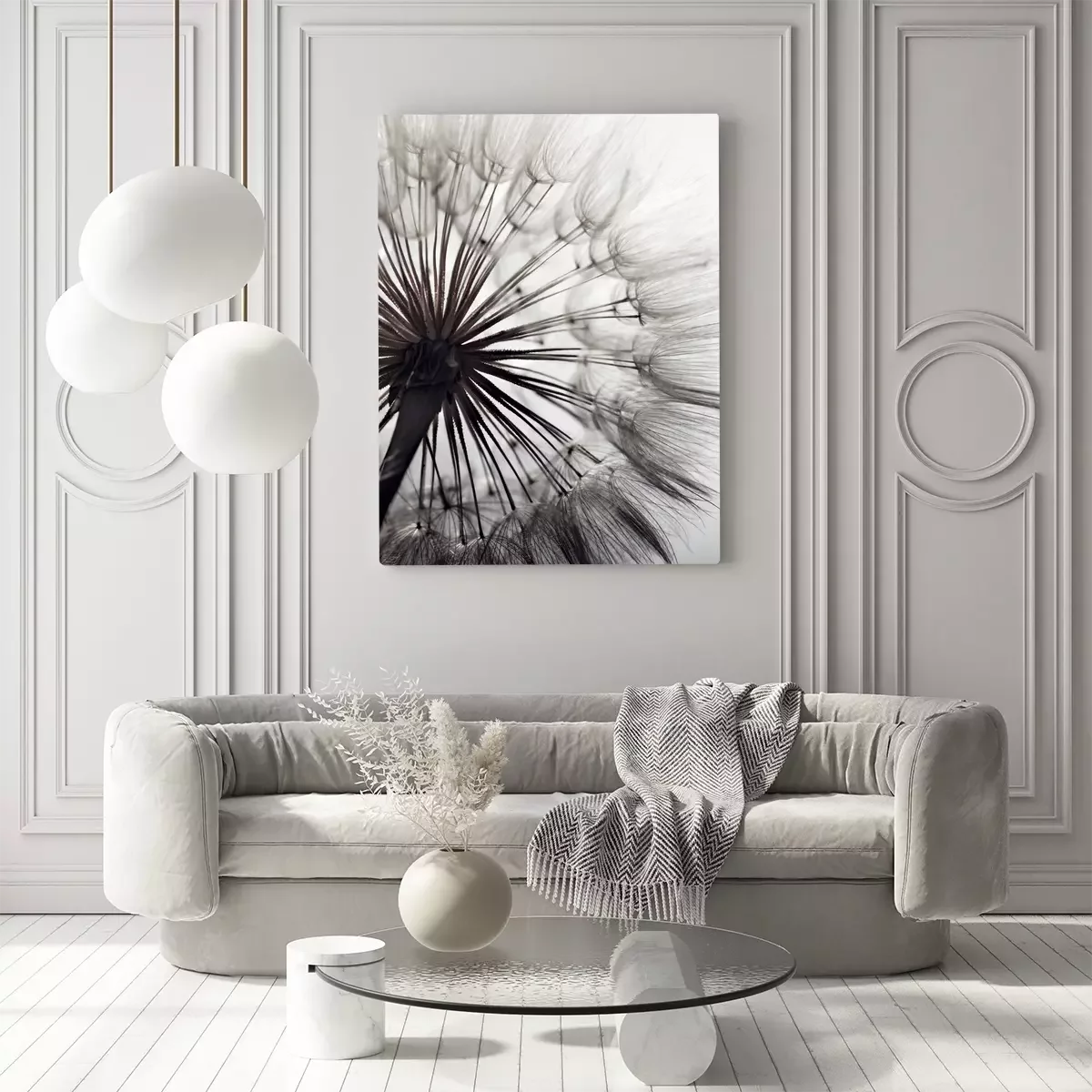 Gros plan d'un pissenlit en nuances de gris