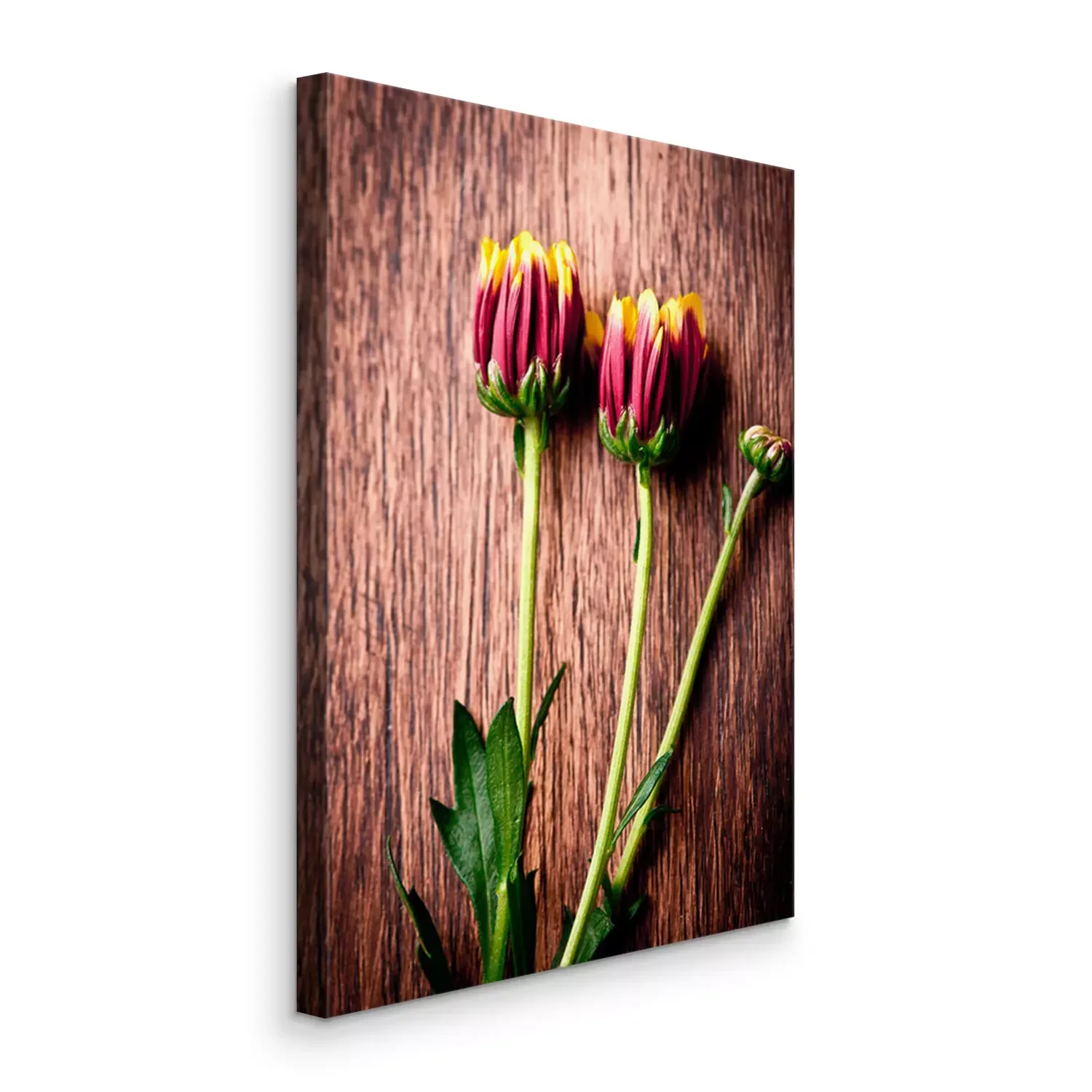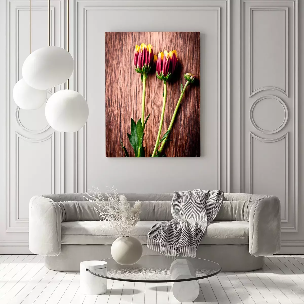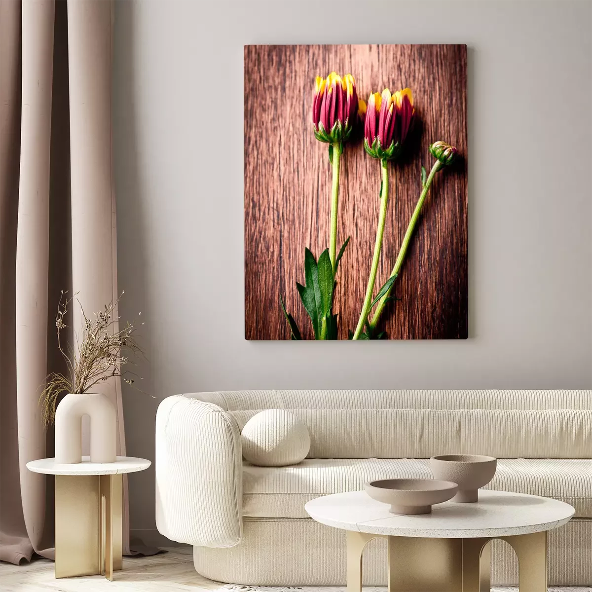 Tableau  Gros plan de fleurs Aster sur fond de bois