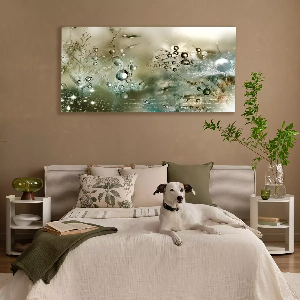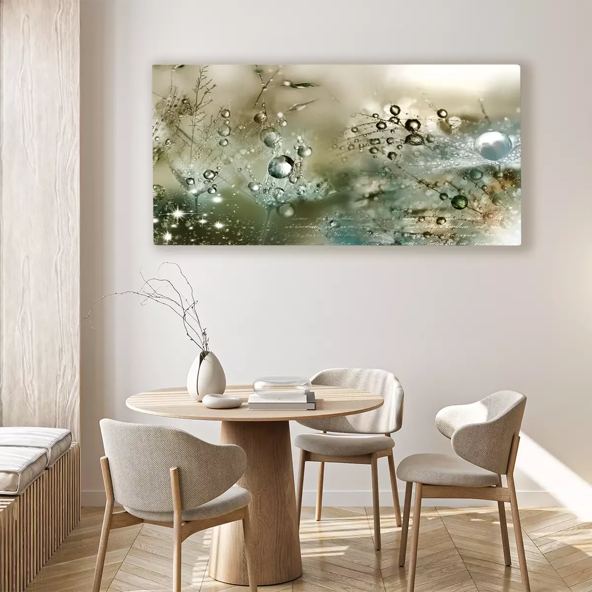 Gros plan de gouttes de rosée sur des graines de pissenlit