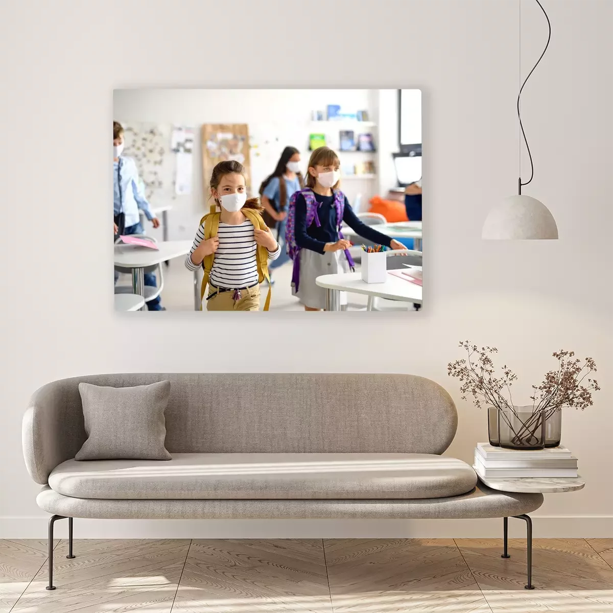 Tableau : Group of children with face mask back at school after covid-19 quarantine and lockdown.