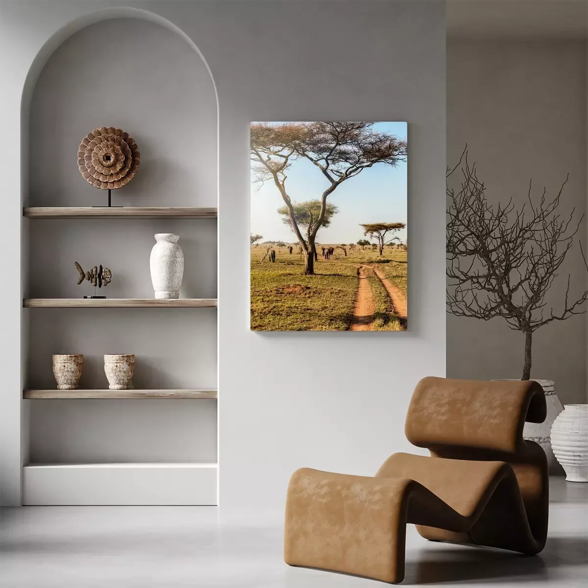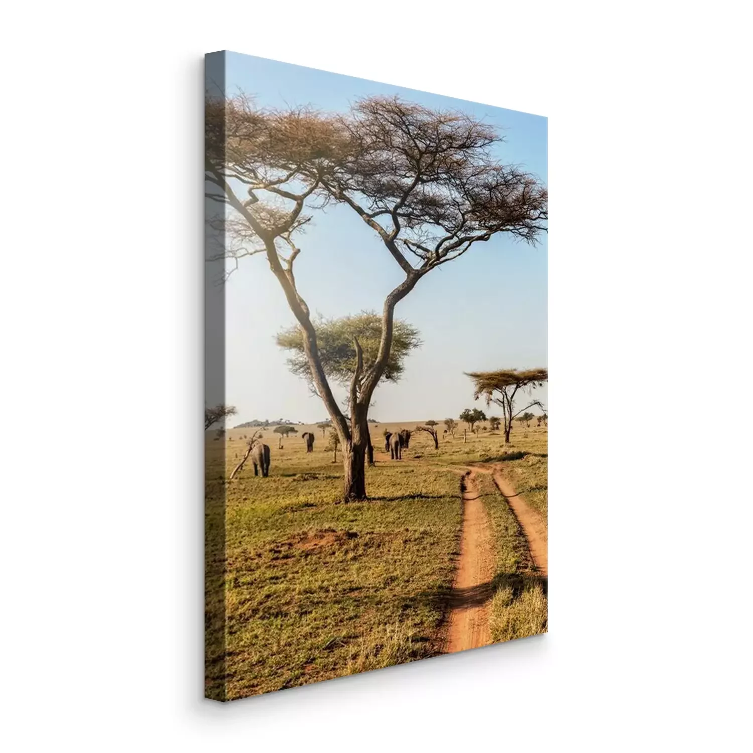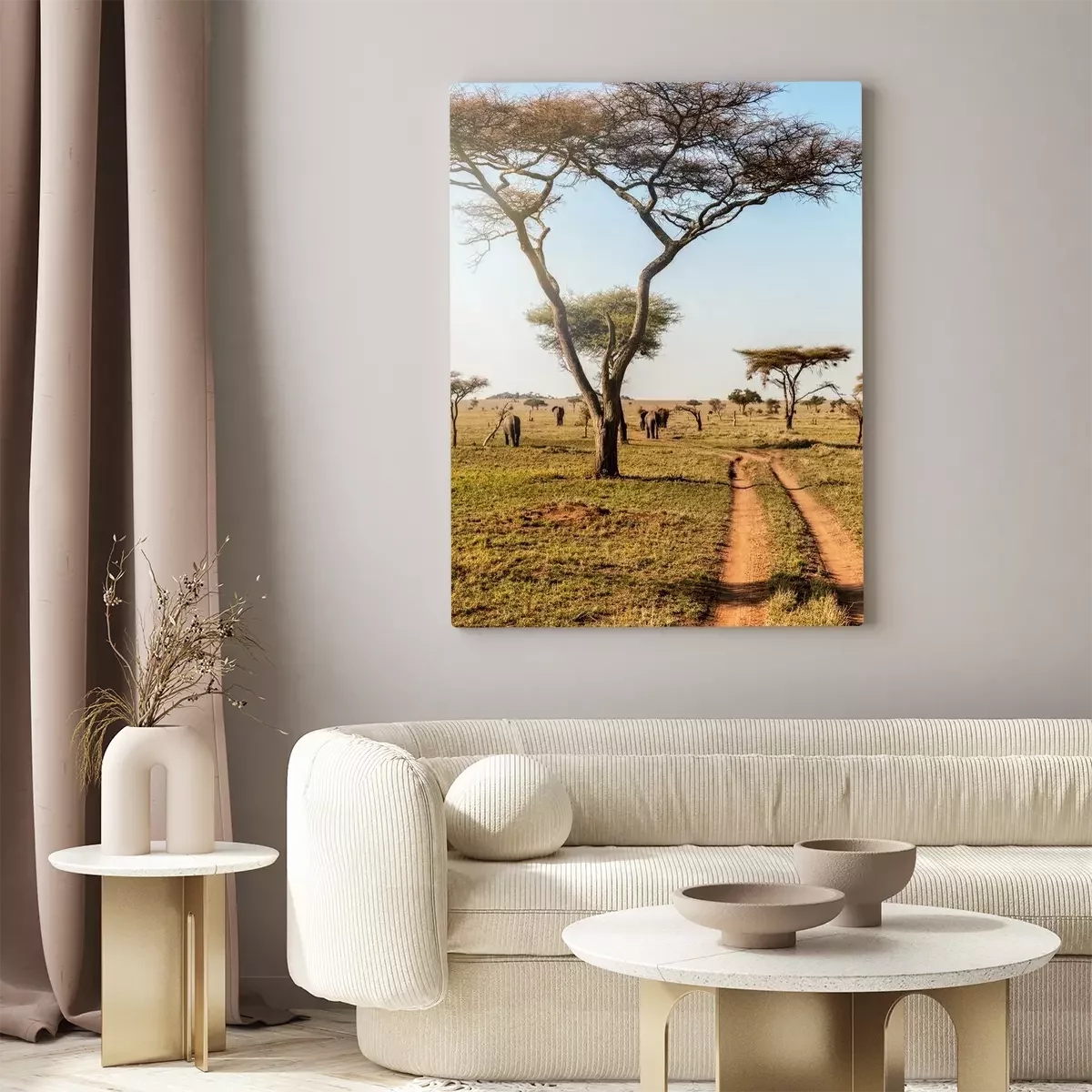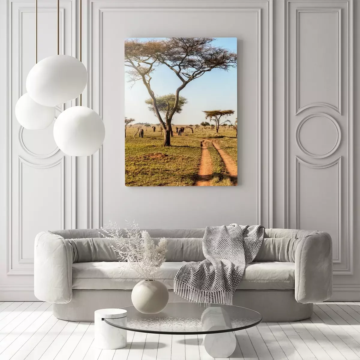 Tableau  Groupe d'éléphants marchant dans le magnifique parc national du Serengeti, Tanzanie, Afrique