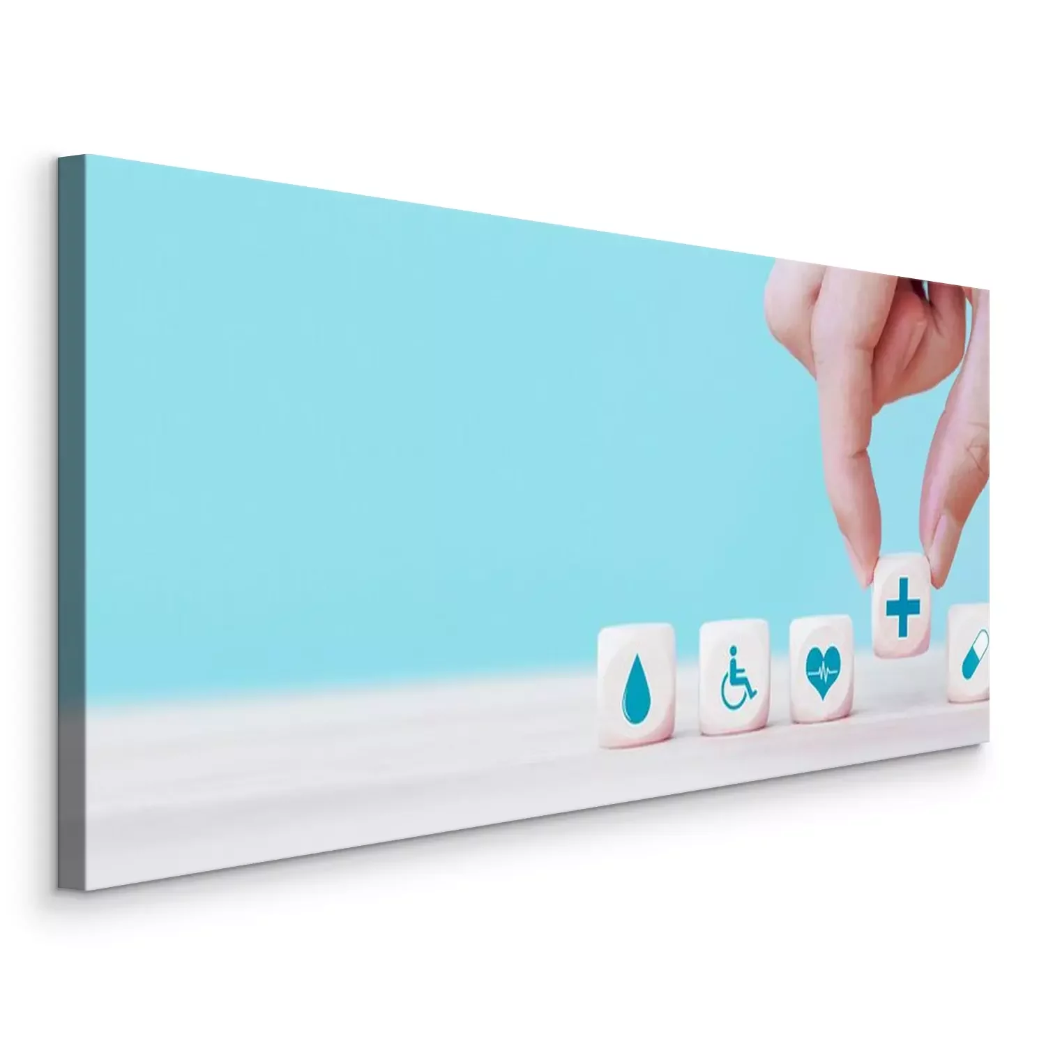 Tableau : Hand chooses a emoticon icons healthcare medical symbol on wooden block , Healthcare and medical Insurance concept