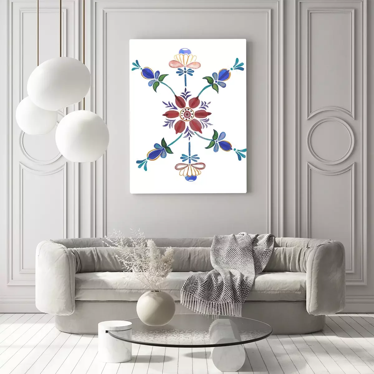 Tableau  hand drawn watercolor floral ornament in scandinavian style