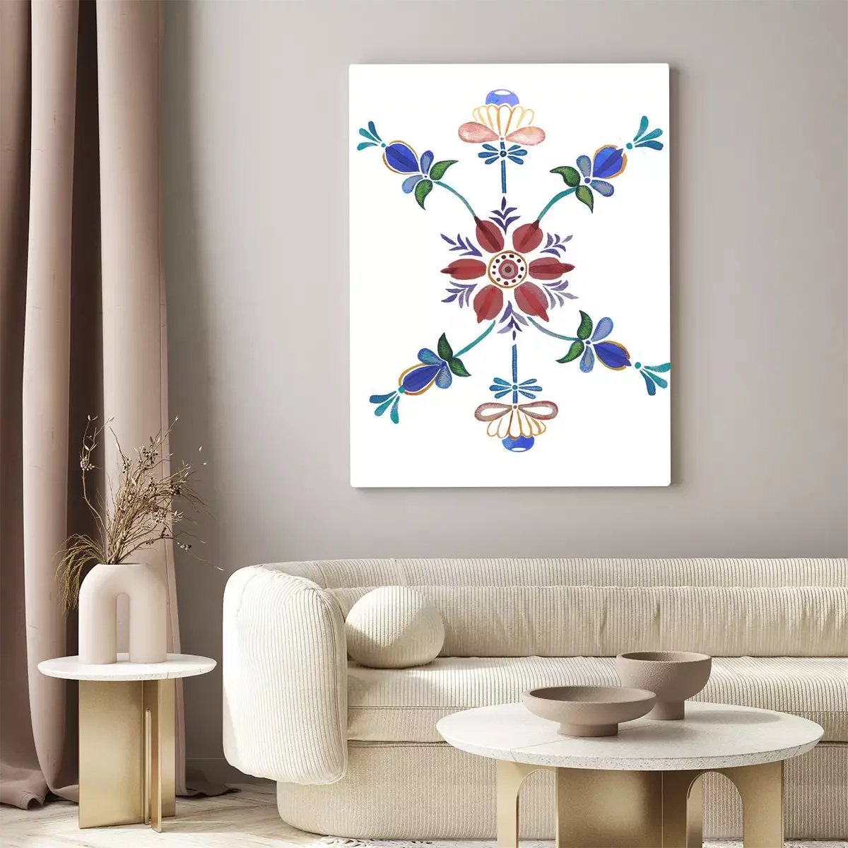 Tableau : hand drawn watercolor floral ornament in scandinavian style