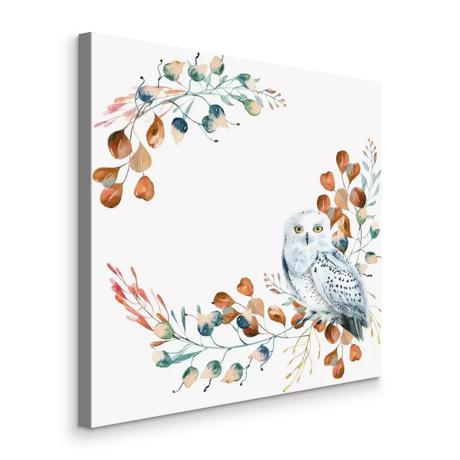 Tableau  Harfang des neiges sur une branche version aquarelle