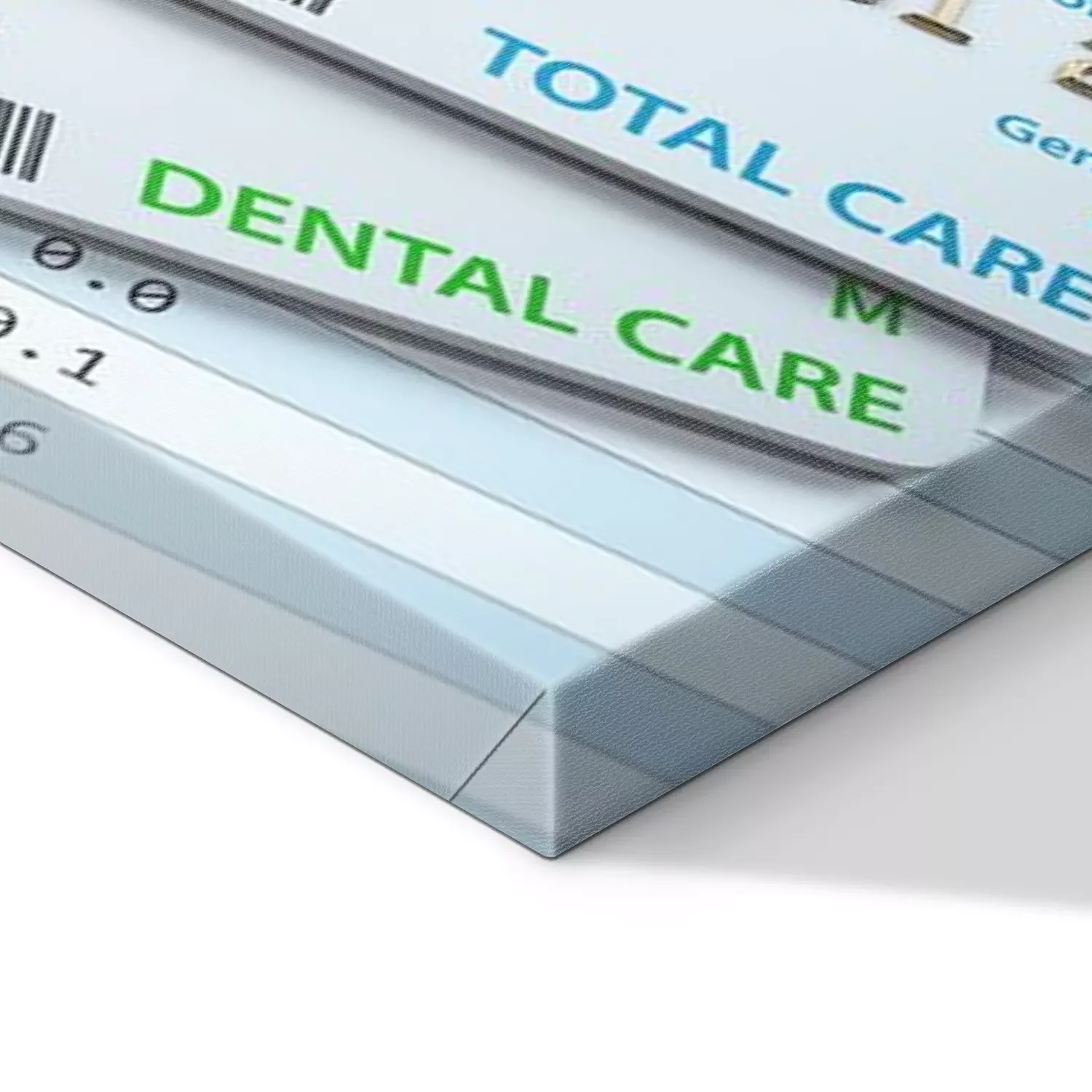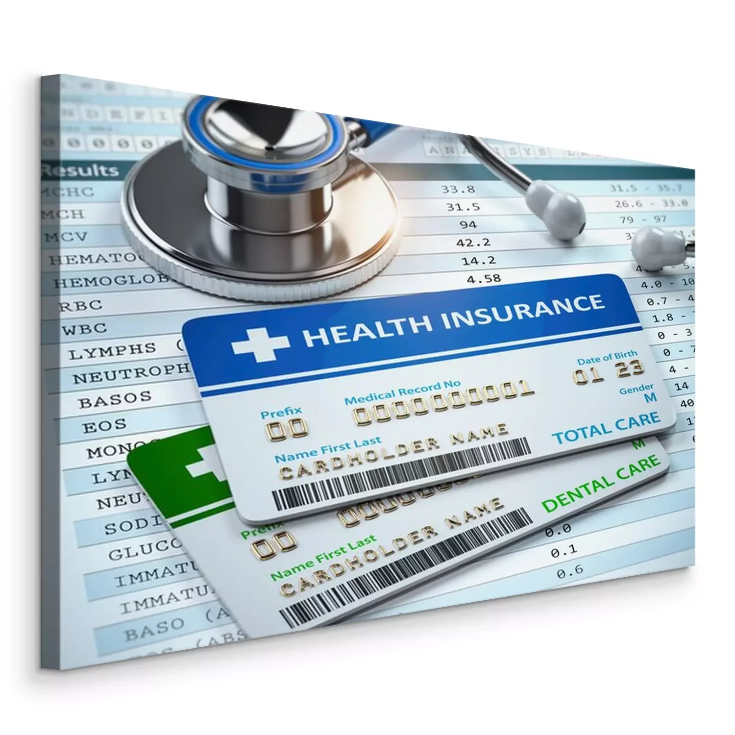 Tableau : Health Insurance cards total and dental care with stethscope.
