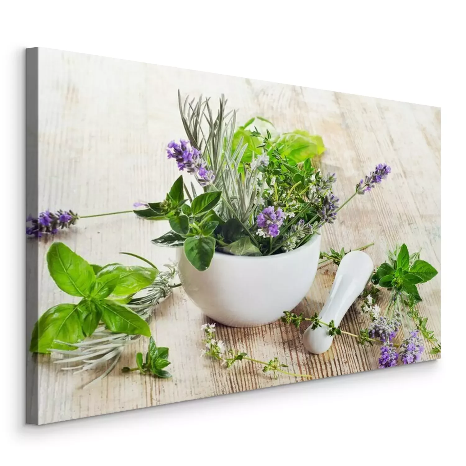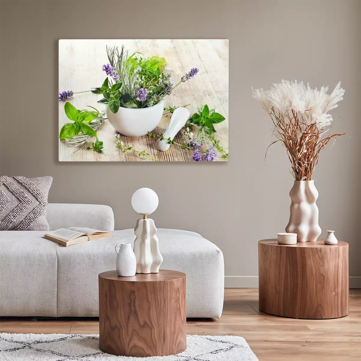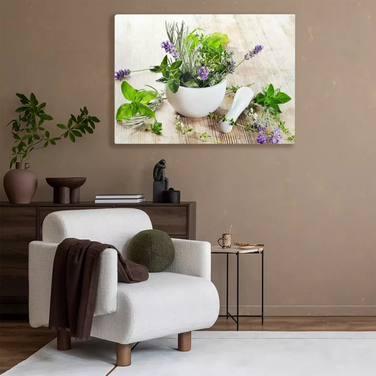 Tableau  Herbes aromatiques fraîches dans un mortier