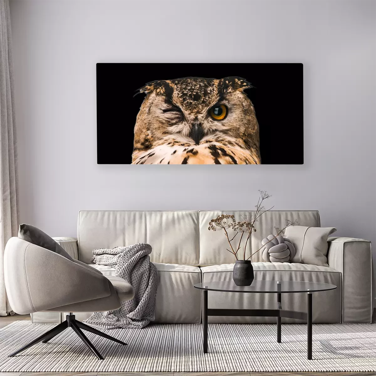 Tableau : Hibou aux yeux fermés