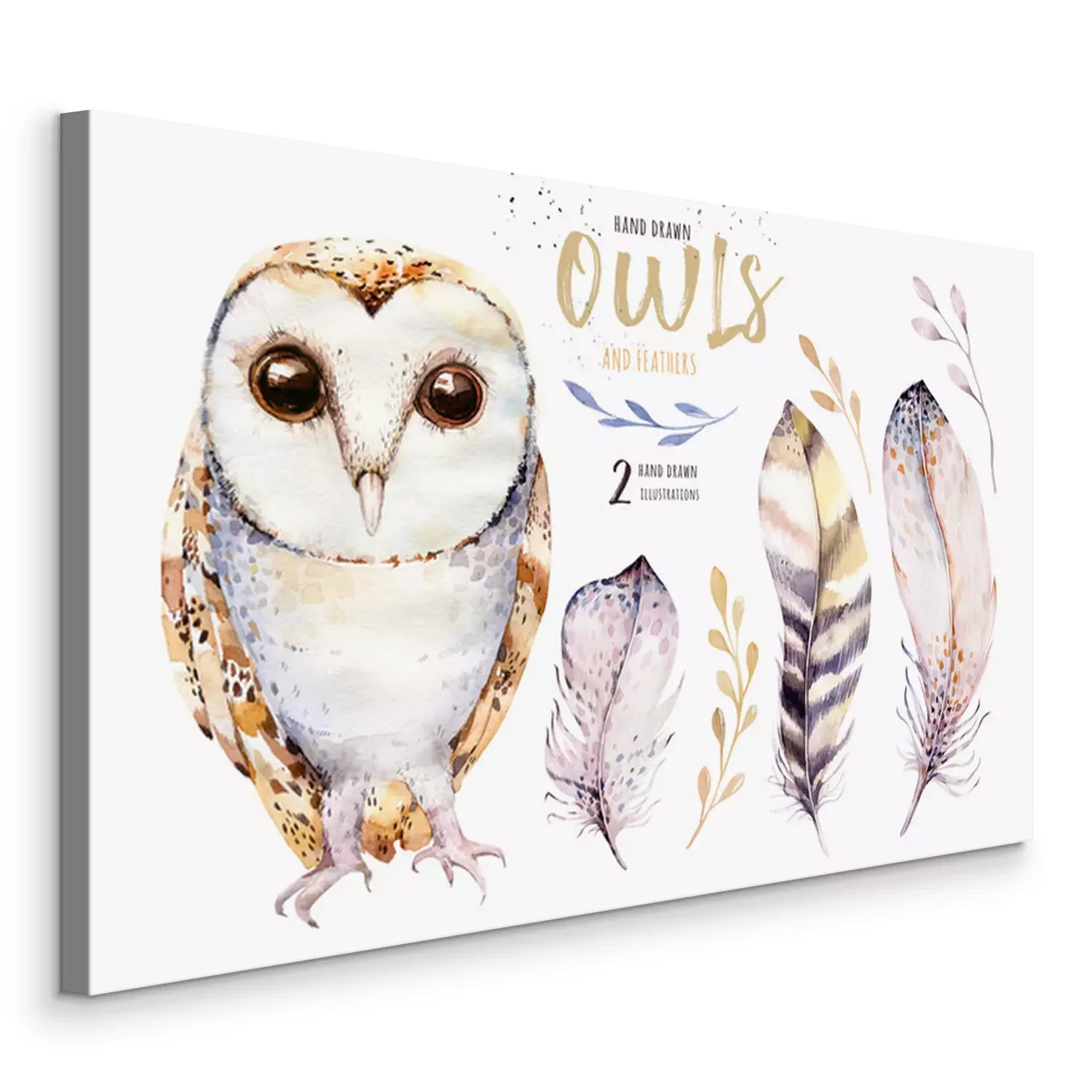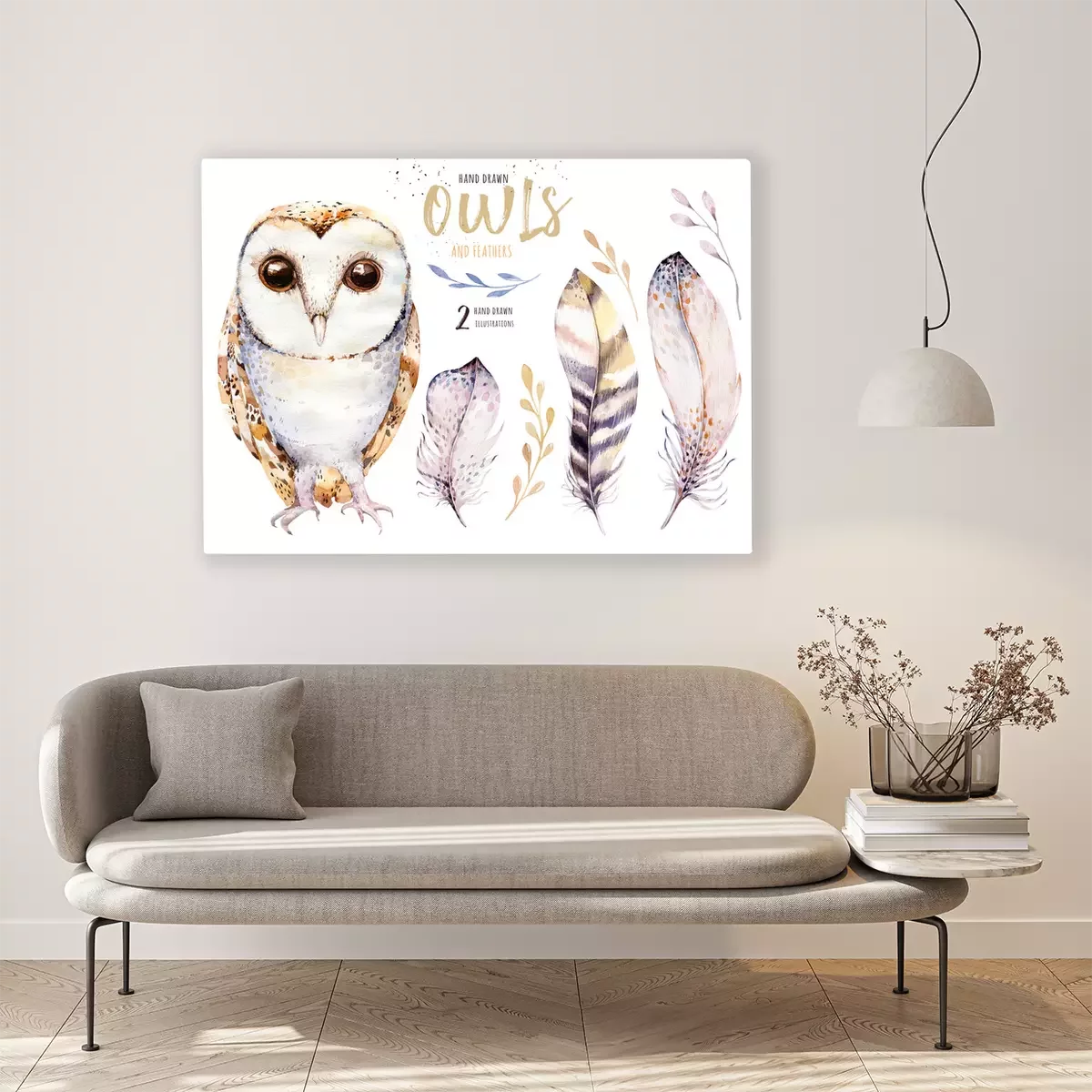 Charmant hibou avec des fleurs aquarellées sur la tête