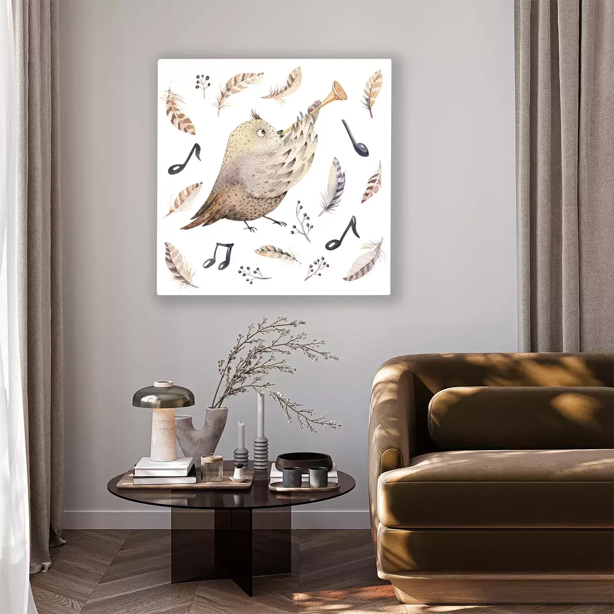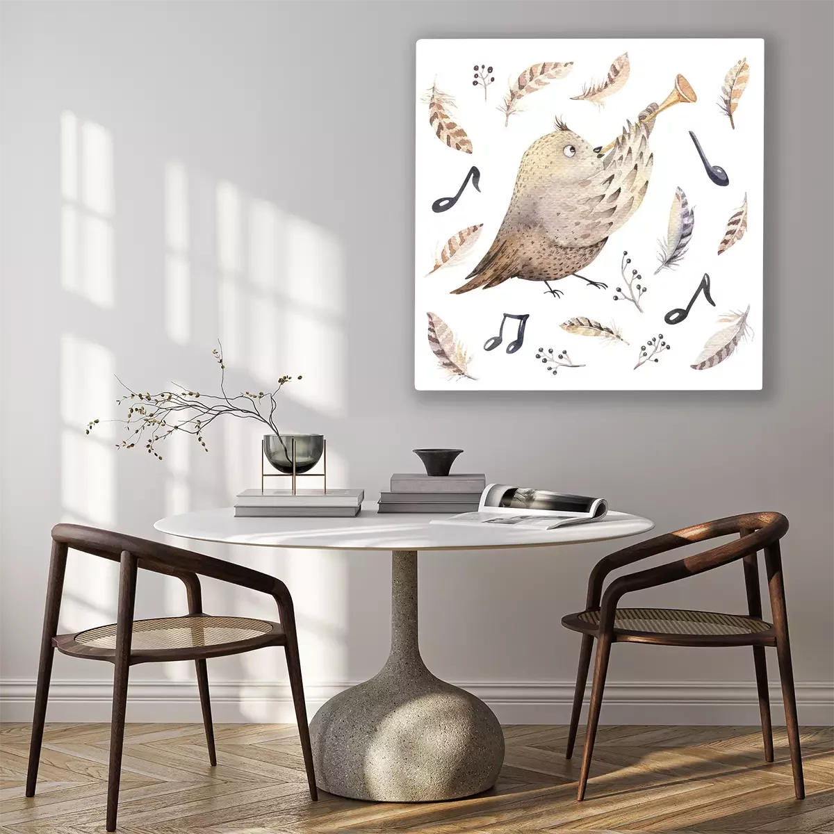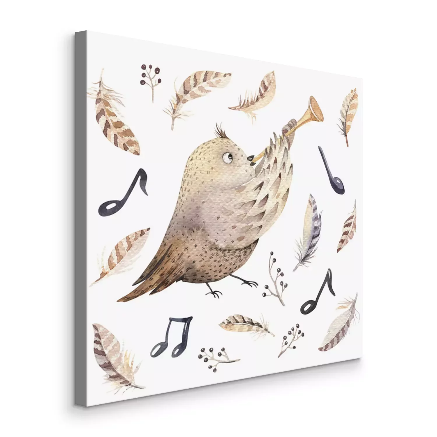 Pour la décoration d'une chambre d'enfant, rien ne vaut le choix d’éléments décoratifs reflétant les passions de votre petit trésor. Vous obtiendrez ainsi une ambiance parfaitement adaptée à l'enfant tout en reflétant ses centres d’intérêt. Notre tableau musical est un excellent exemple pour un enfant qui aime chanter ou jouer d'un instrument. Cette fabuleuse illustration l'encouragera et le motivera à développer ses compétences. Ce tableau enfant se distingue par son esthétique unique. Cette illustration rappelle une peinture à l'aquarelle, ce qui lui donne un caractère à la fois délicat et artistique. Ce tableau chouette offre également l’avantage d’être universel. Ce magnifique oiseau jouant de la trompette, entouré de plumes et de notes de musique flottant dans l'air, conviendra aussi bien dans la chambre d'un garçon que dans celle d’une fille. Il s’agit d’un motif décoratif qui plaira aux enfants qui aiment la musique, mais aussi à ceux qui adorent les animaux. Ce tableau enfant s'intègrera parfaitement dans un intérieur de style scandinave et éco où les accents décoratifs avec des motifs d'animaux de la forêt sont toujours les bienvenus. Ce style de décoration repose sur des couleurs douces et des matériaux naturels aidant à créer un espace qui stimulera les sens de l'enfant en toute subtilité. Dans cette partie de la maison, il est conseillé de ne pas se limiter à la présence d’un seul accent décoratif. Notre tableau chouette sera ainsi magnifiquement mis en valeur aux côtés de modèles exposant d'autres animaux de la forêt tels que des renards, des ours, des écureuils ou encore des faons. En décorant la chambre avec de tels accents, vous créerez une atmosphère chaleureuse et vous inviterez également la nature dans la pièce. Les accents inspirés de la nature correspondent à des solutions éprouvées en matière de décoration d’intérieur. Accompagné d'autres habitants de la forêt, notre tableau chouette constitue une magnifique solution pour parfaire une chambre accueillant également une tente tipi où l'enfant pourra faire semblant de camper dans la forêt à la belle étoile !