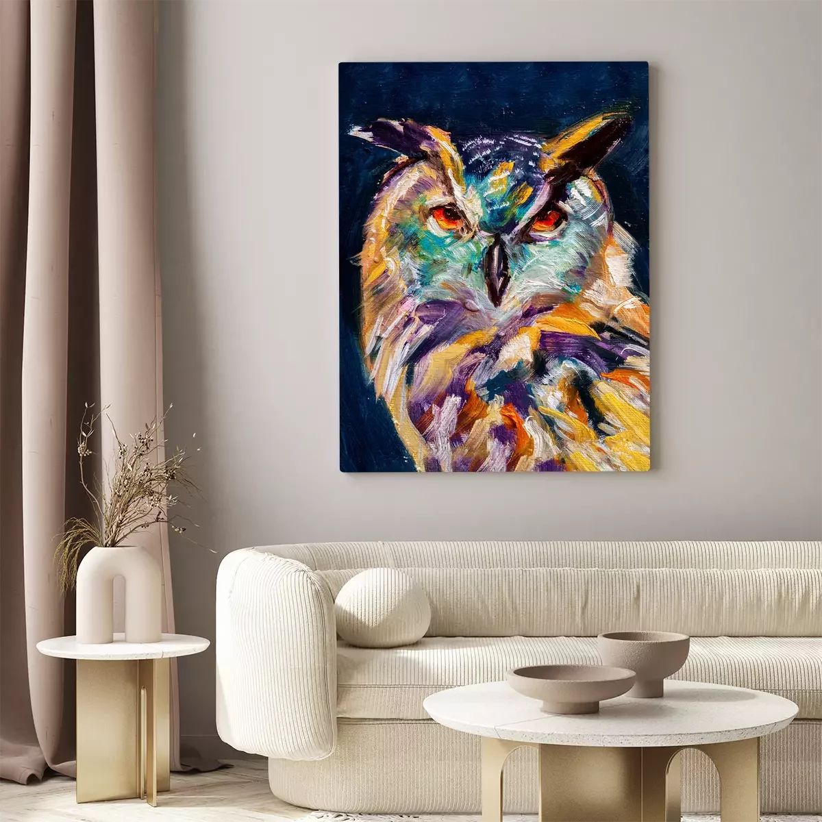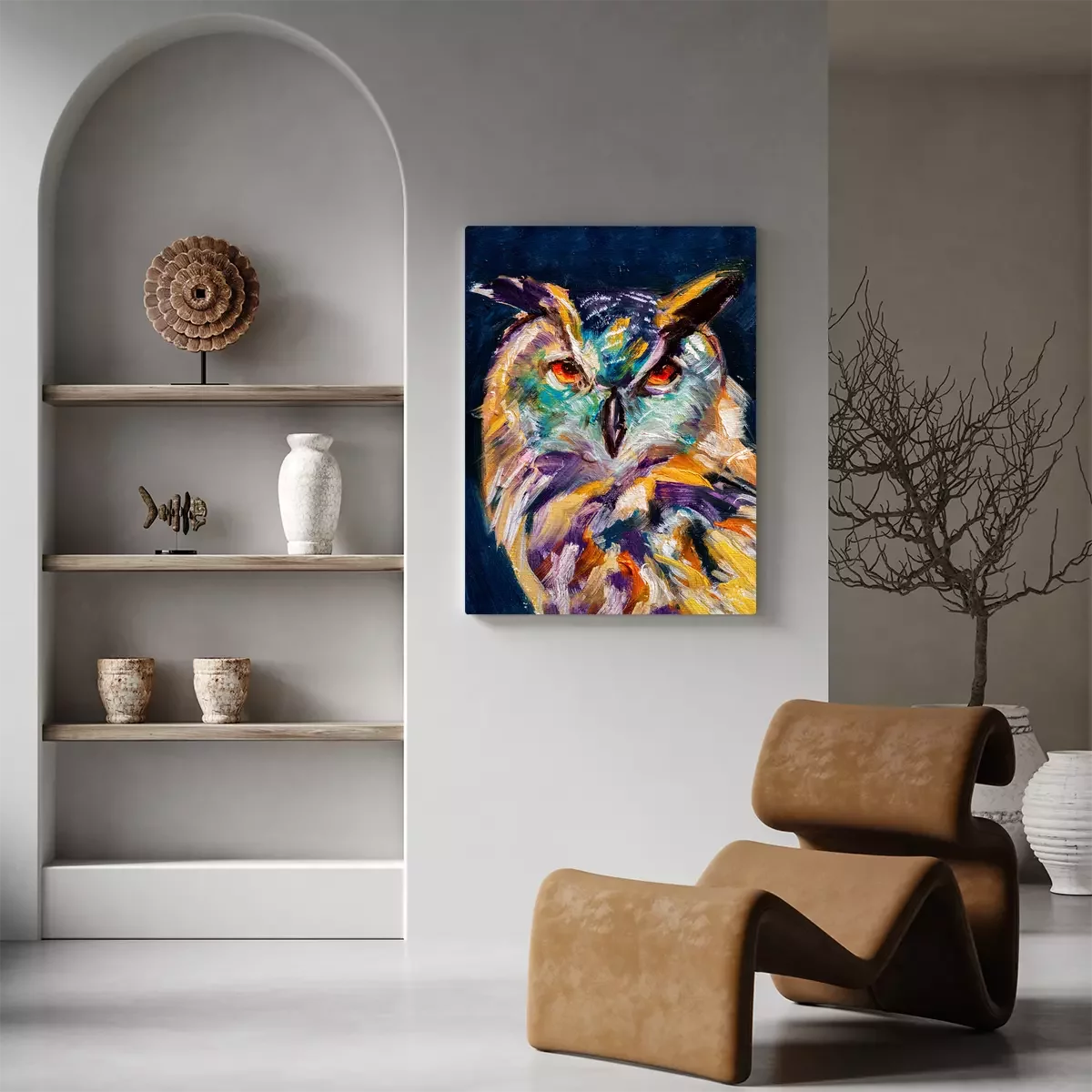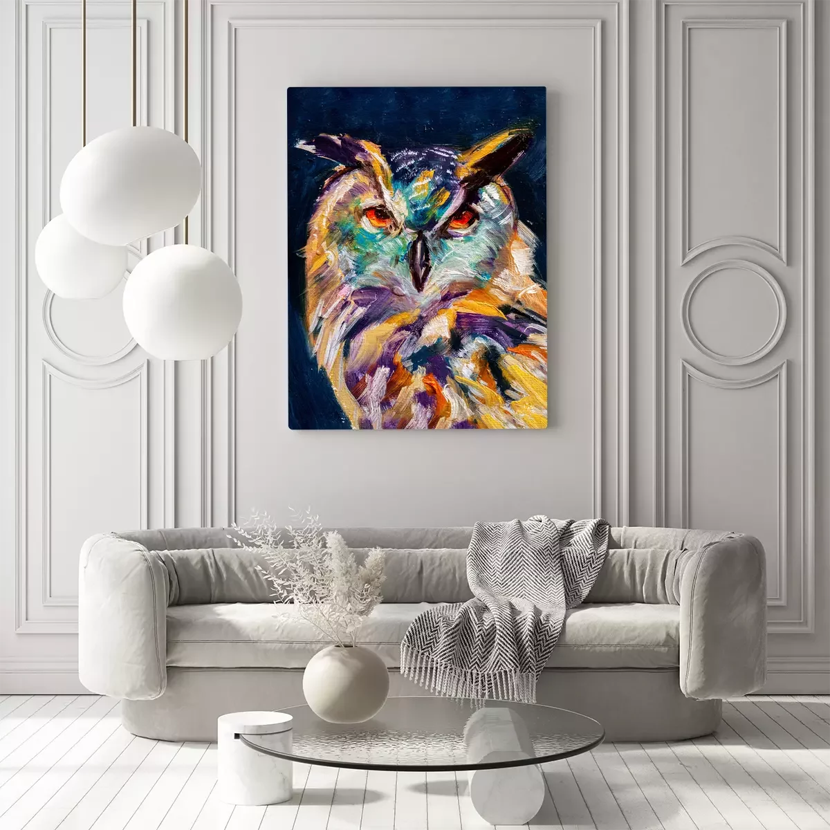 Tableau : Hibou peint coloré