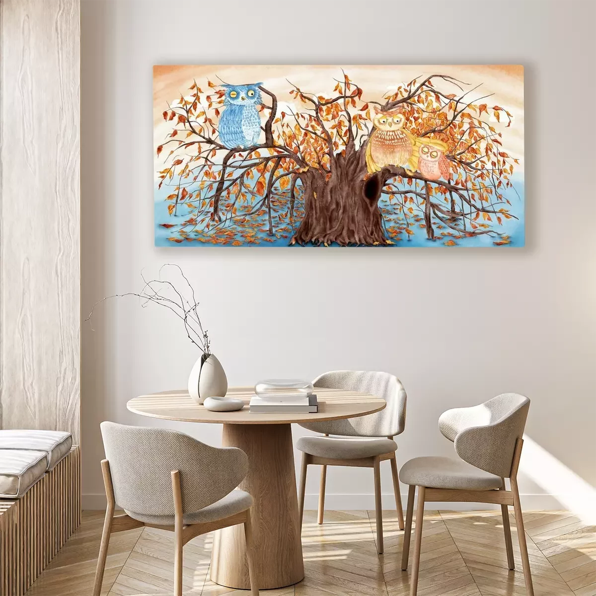 Tableau  Hiboux graphiques sur l'arbre