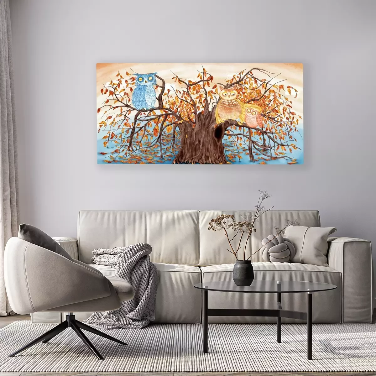 Tableau : Hiboux graphiques sur l'arbre