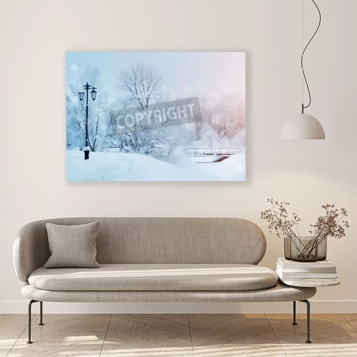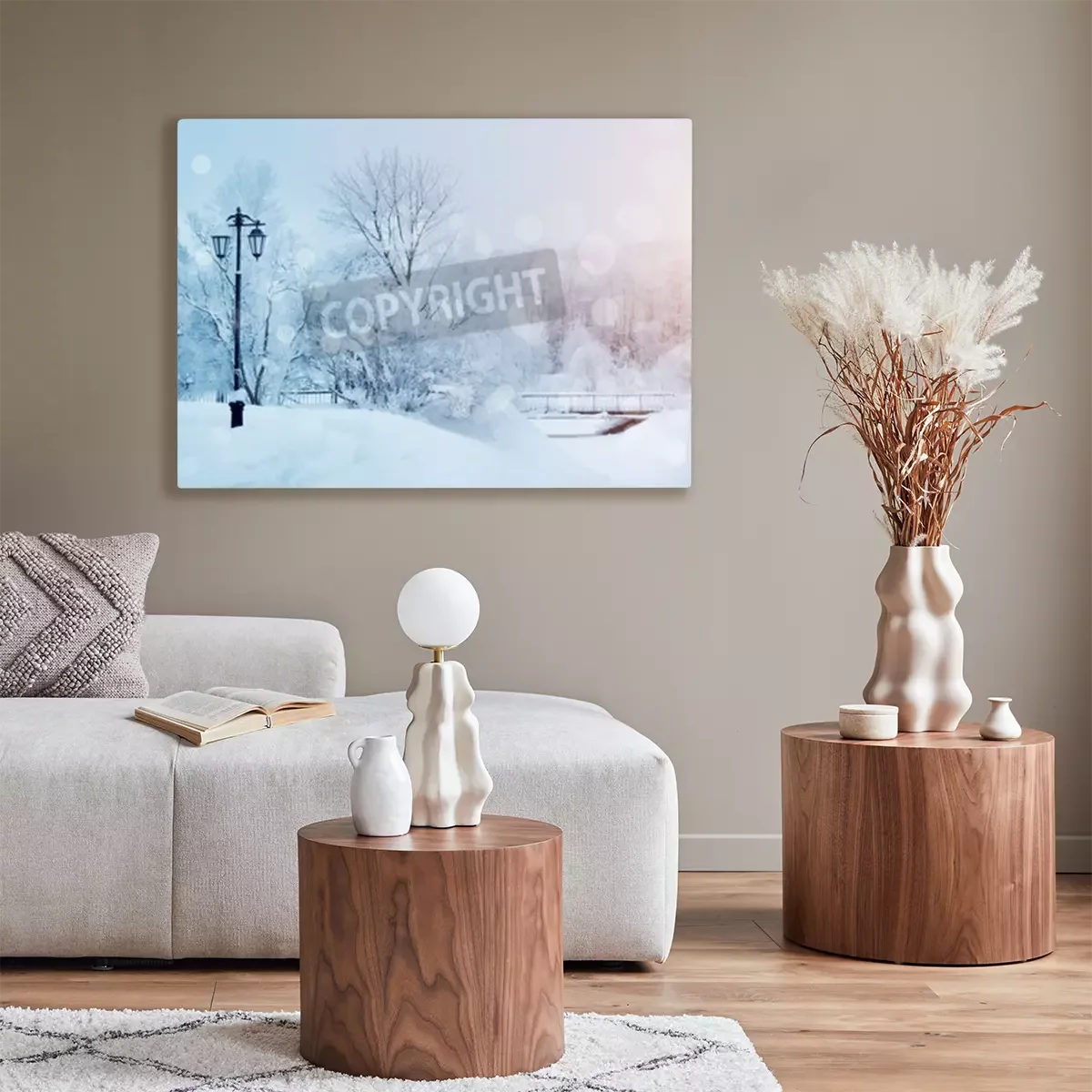 Tableau  Hiver fond, paysage. Arbres d'hiver dans le pays des merveilles. Scène hivernale. Noël, nouveau, année, fond