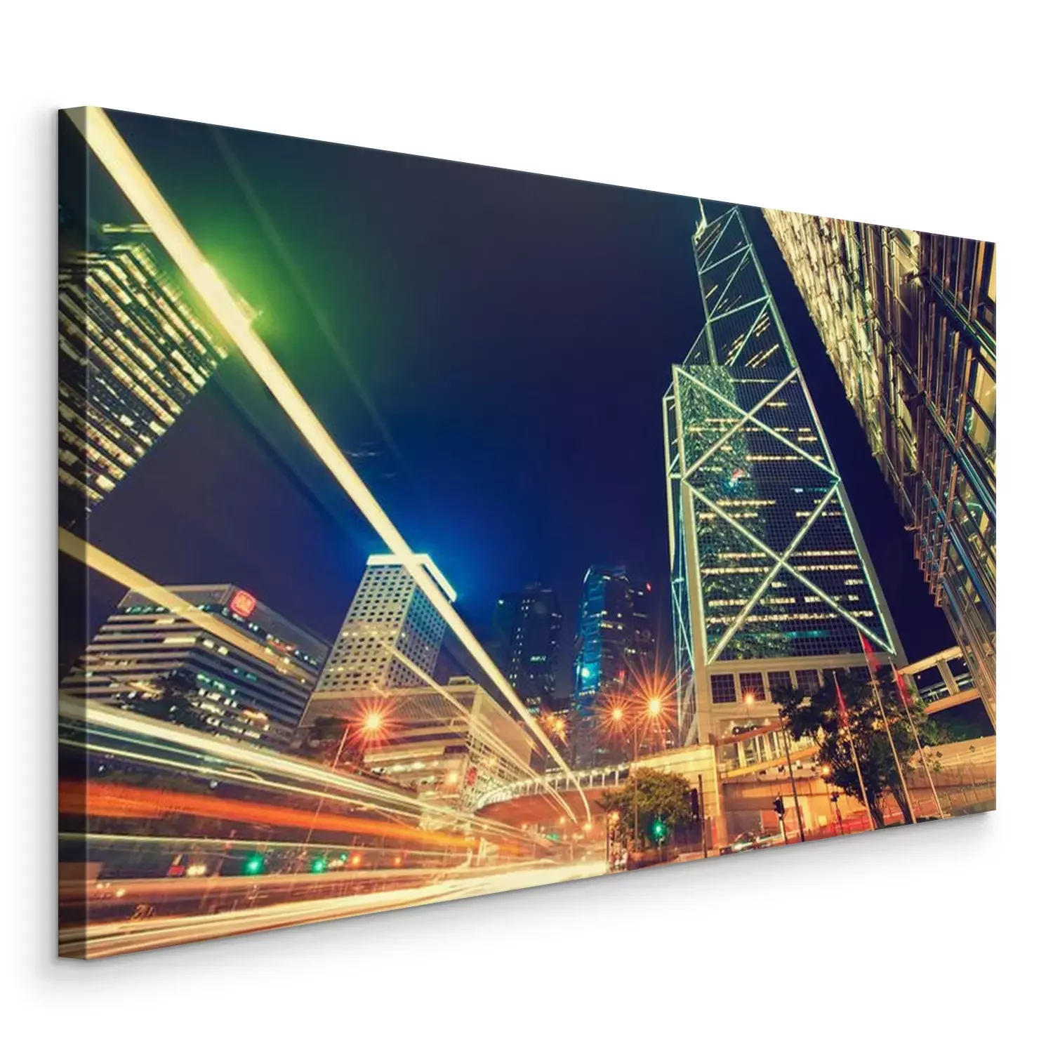Tableau  Hong Kong, Chine, vue de nuit. Rayons, clair, lumières, grand, ville, Hong, kong