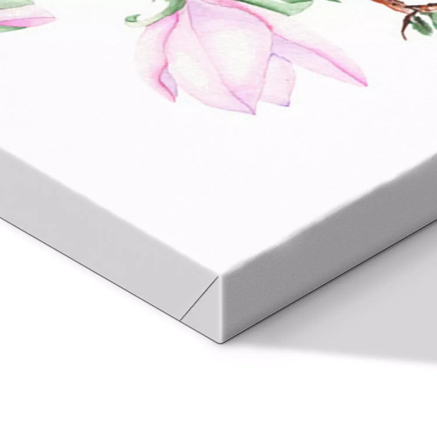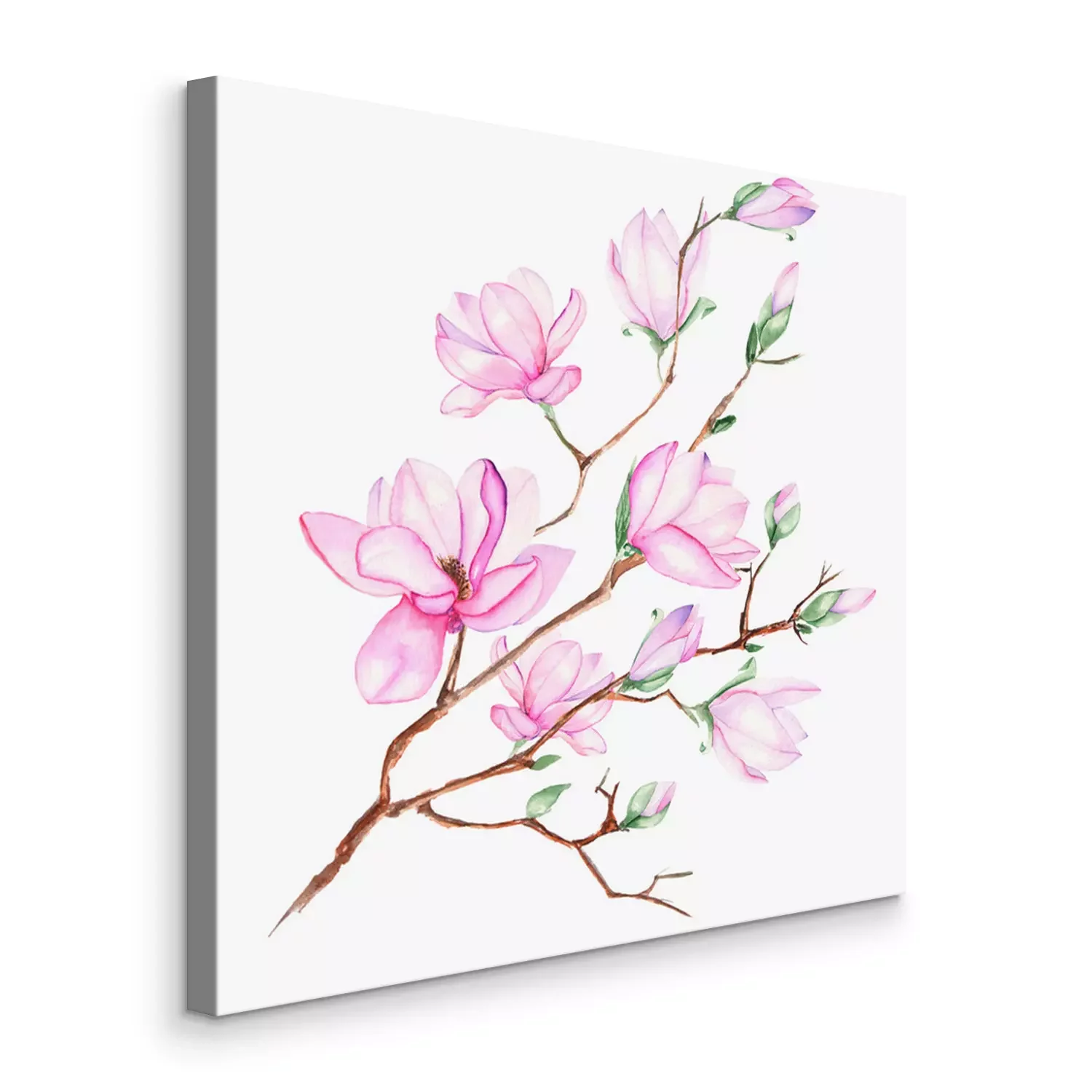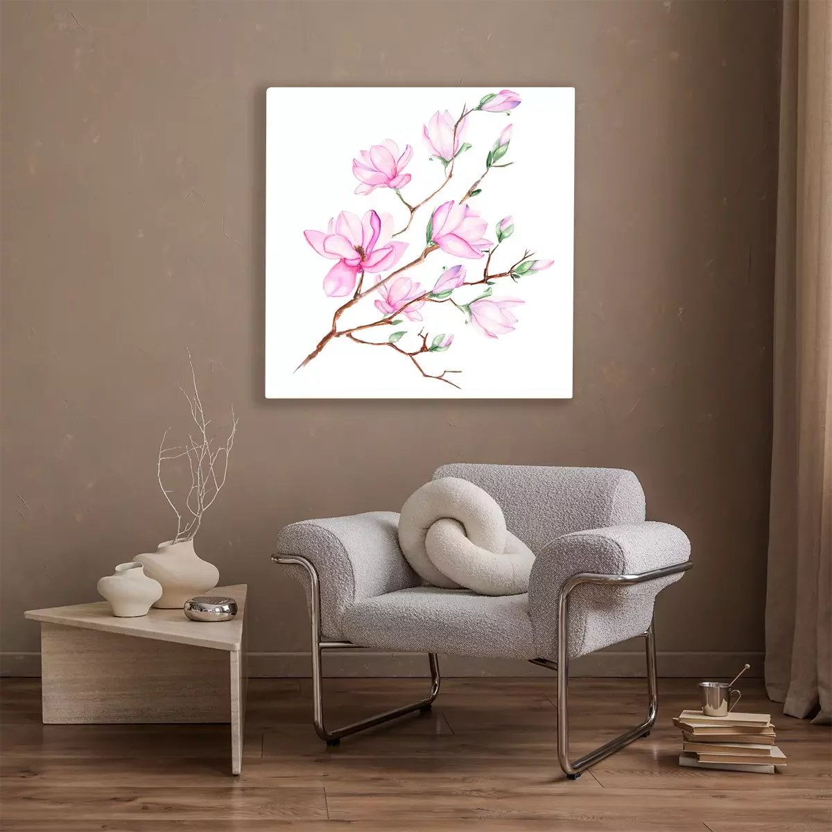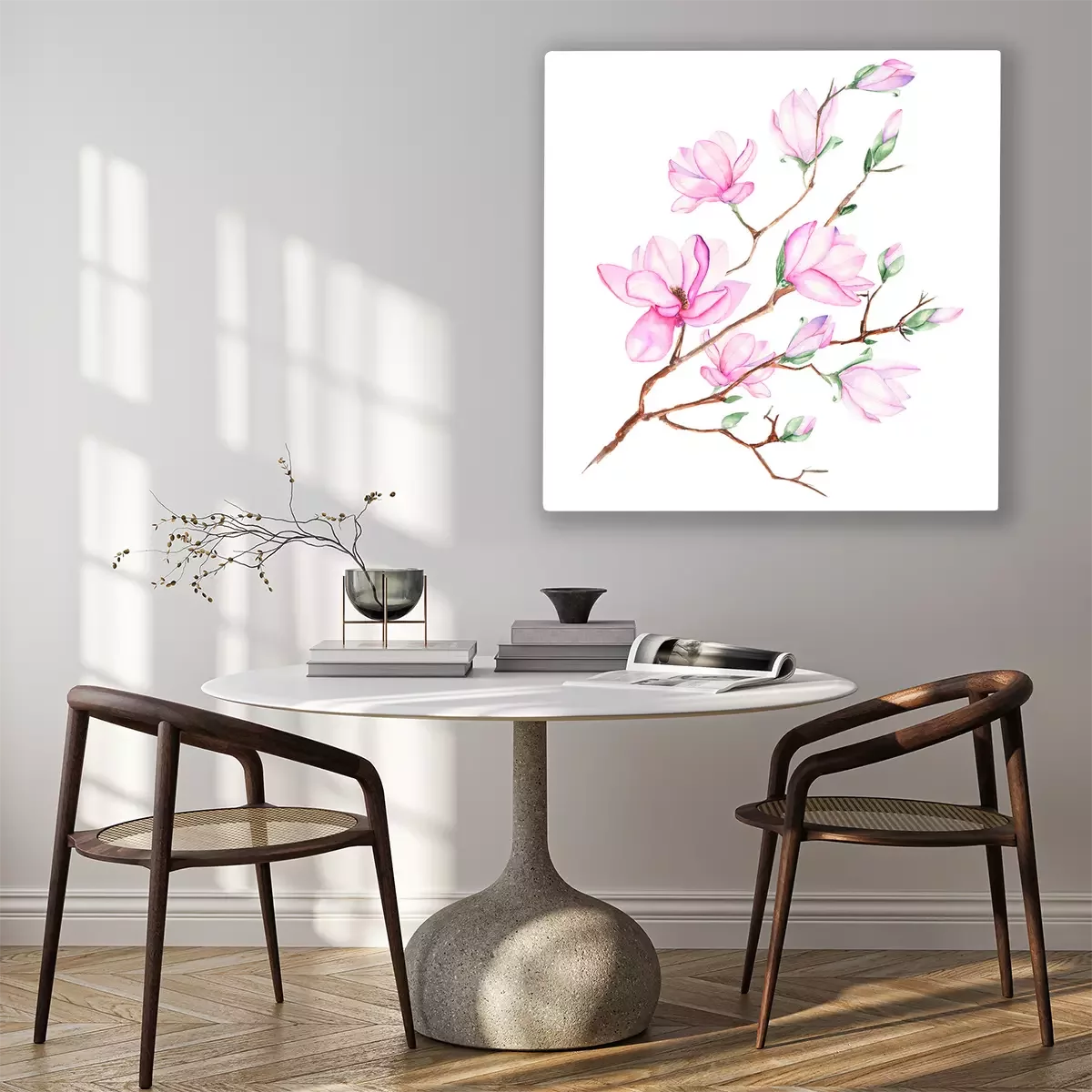 Tableau  Illustration avec Magnolia branche avec des fleurs roses peintes à l'aquarelle sur un fond blanc