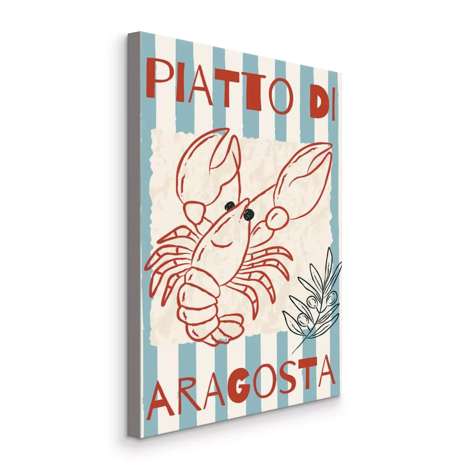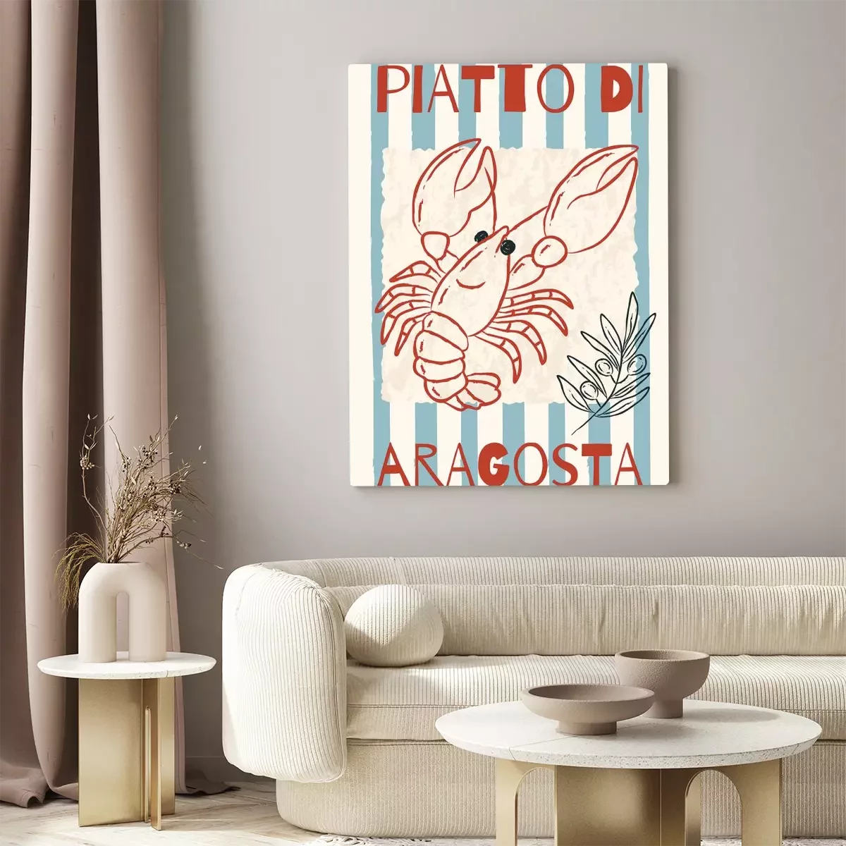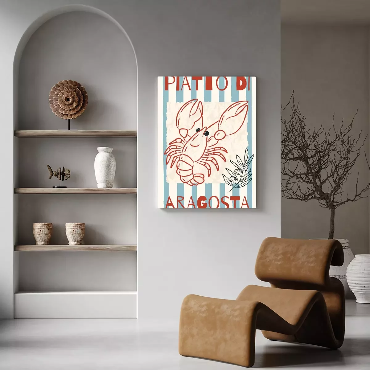 Illustration d'un homard avec une branche d'olivier sur un fond rayé