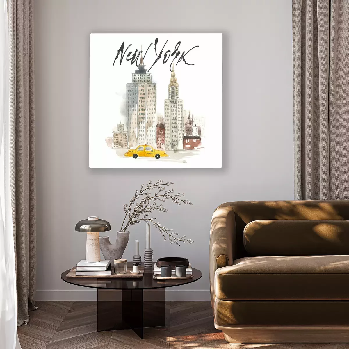 Tableau  Illustration de dessin isolé main New York. Concept aquarelle.