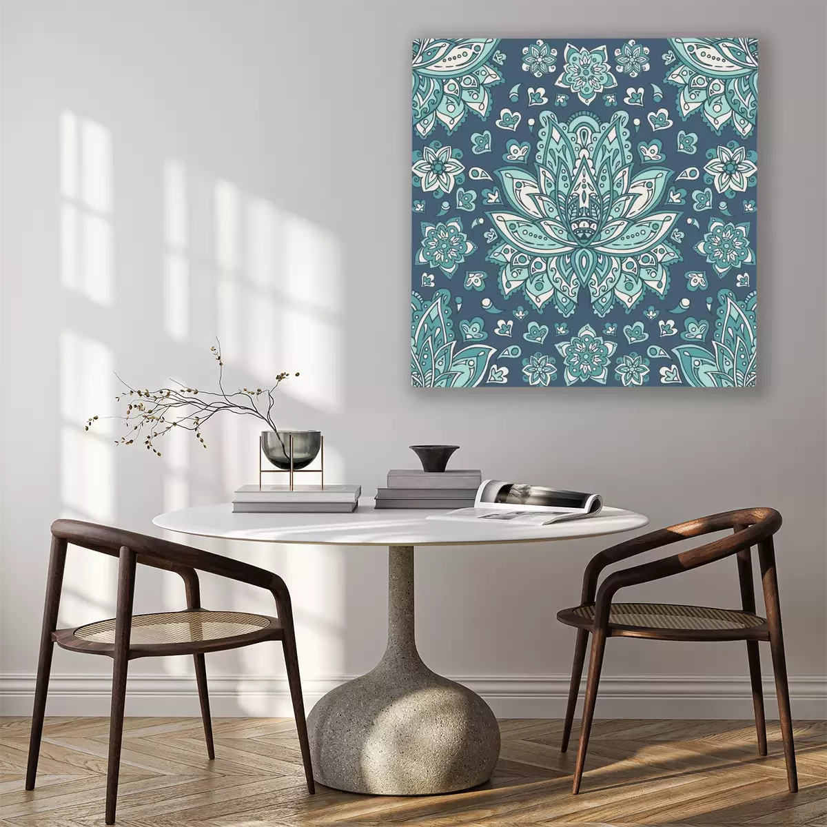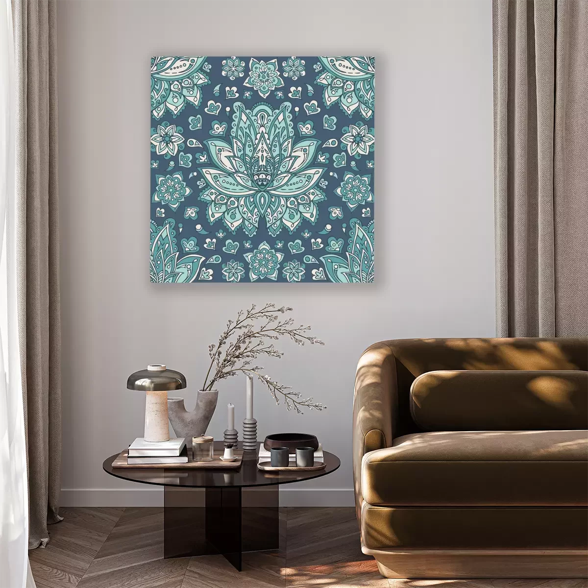 Tableau  Illustration vectorielle Symbole de hamsa indien dessinés à la main. Modèle sans couture floral vintage avec des fleurs de fantaisie.