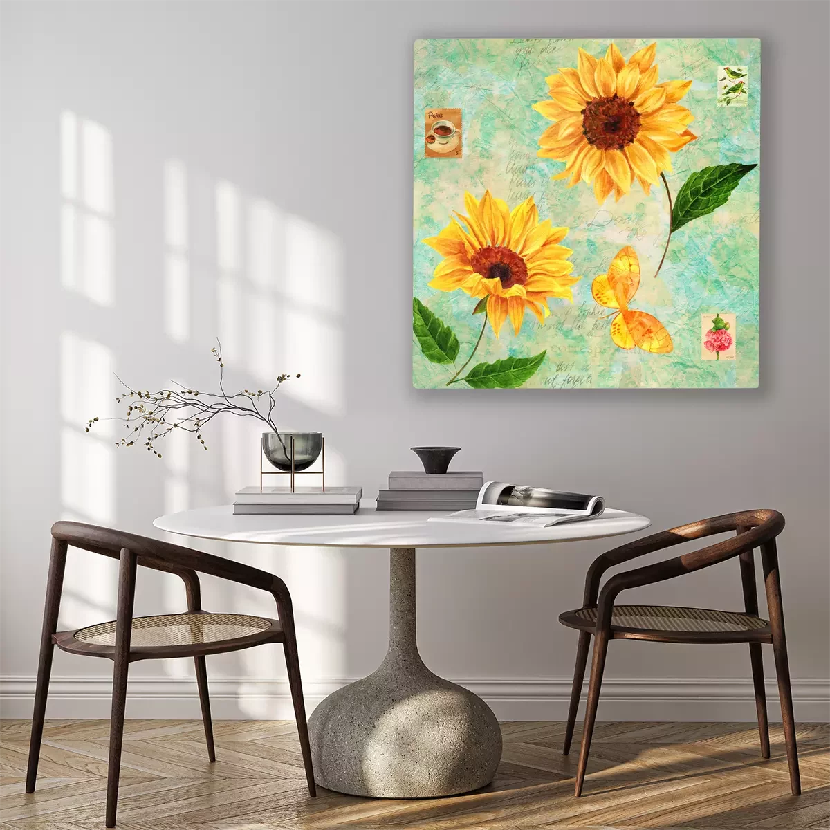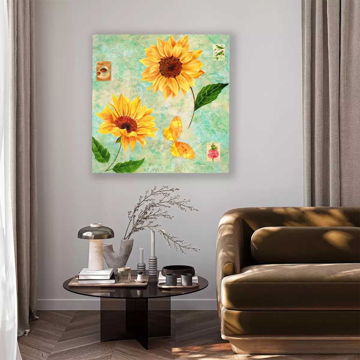 Tableau : Illustration vintage avec des tournesols