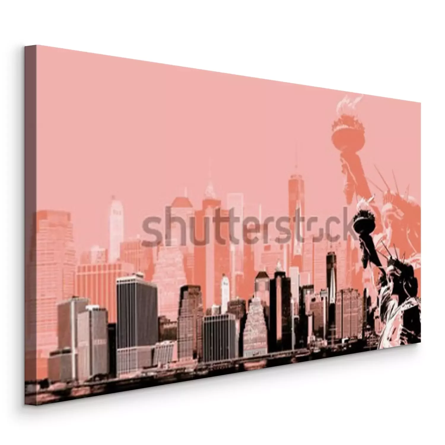 Tableau : Image abstraite de manhattan. Symboles de New York. Skyline de Manhattan et la Statue de la Liberté à New York. Art contemporain et style affiche en orange
