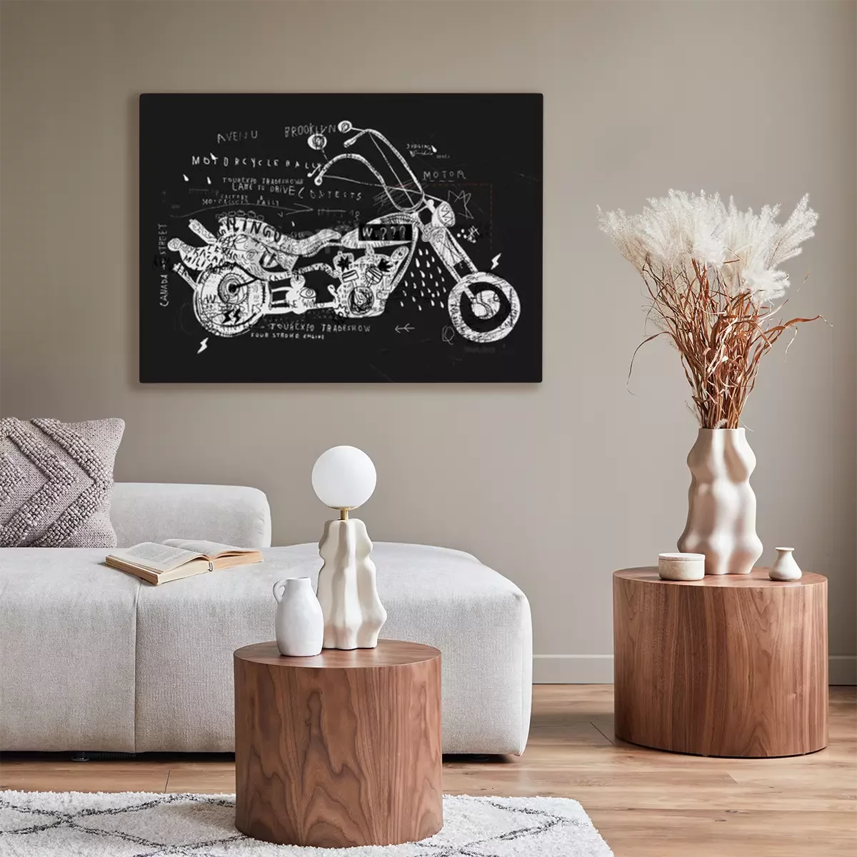 Tableau  Image de moto, qui est faite dans le style de graffiti