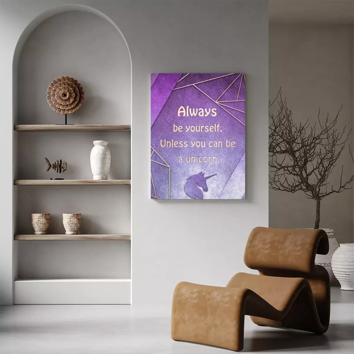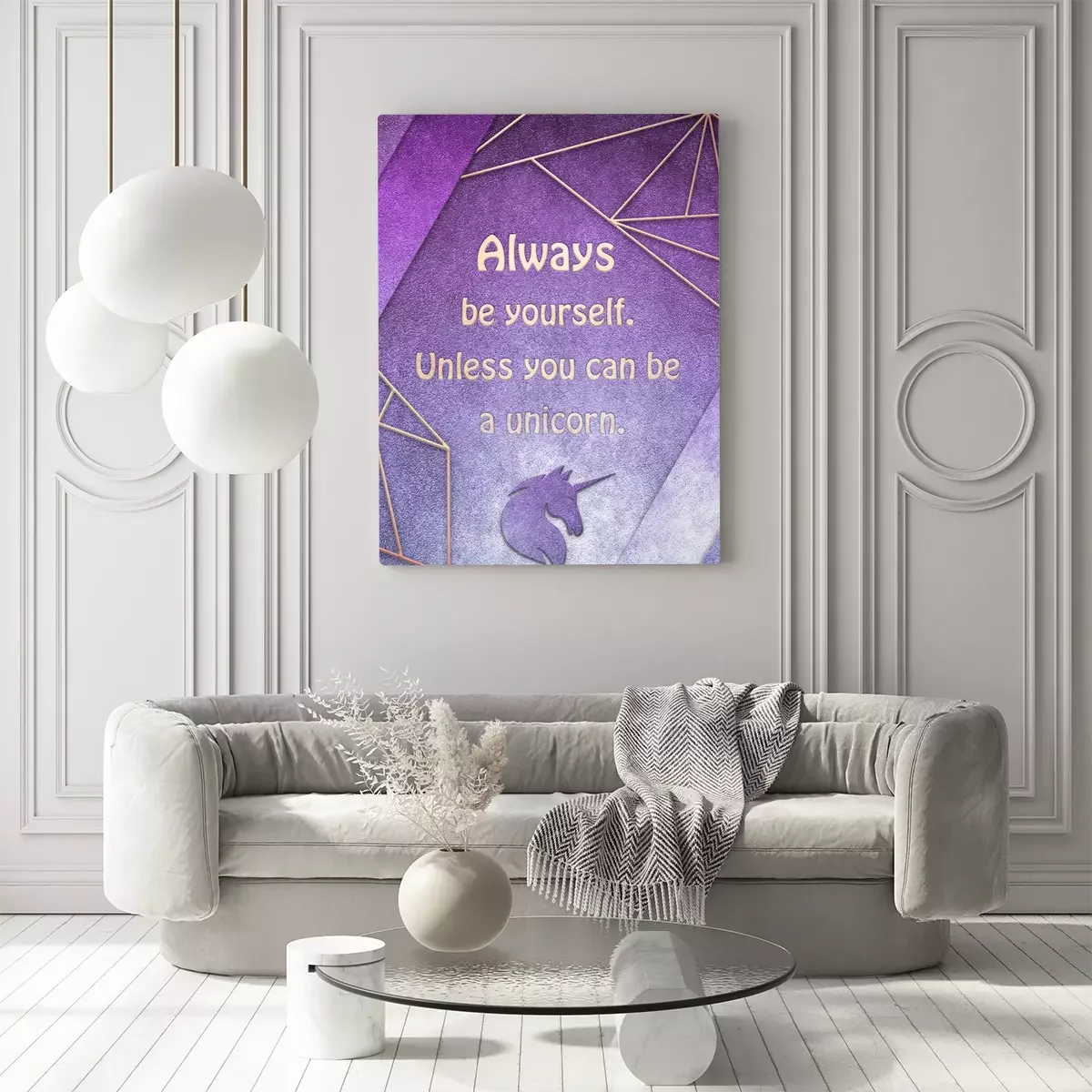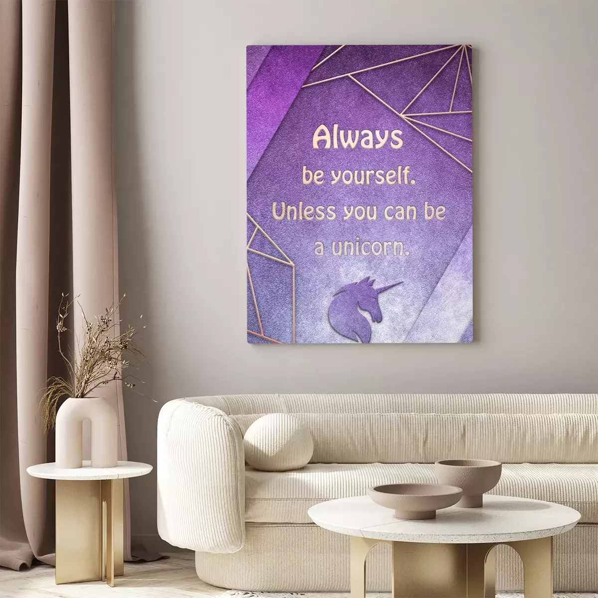 Inscription dorée avec une tête de licorne