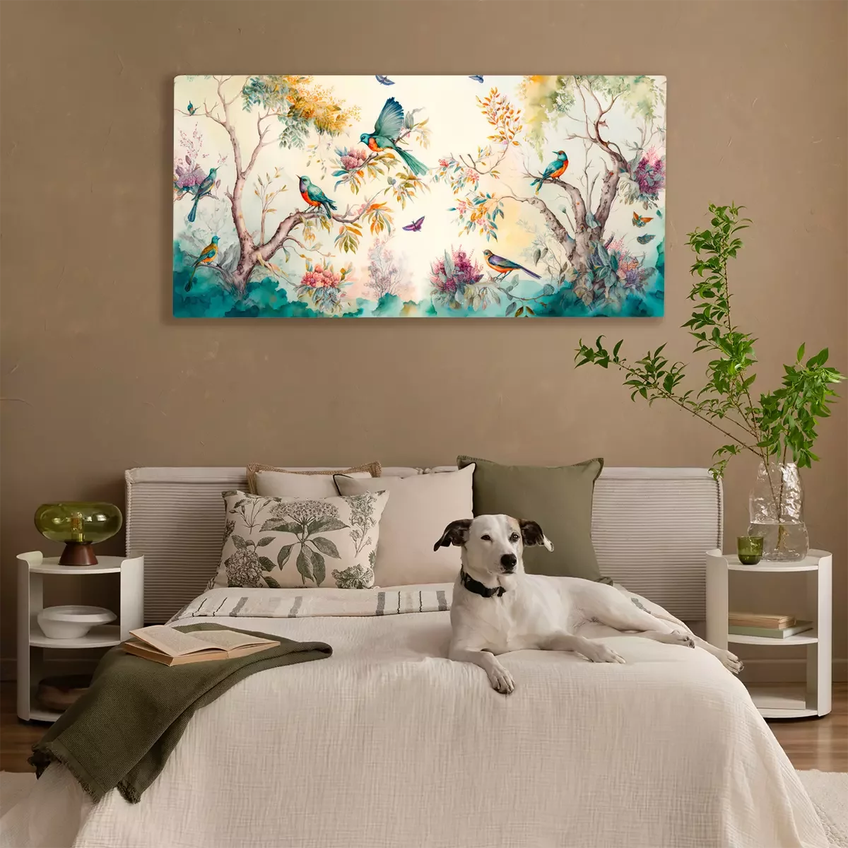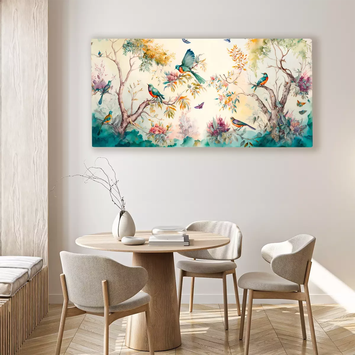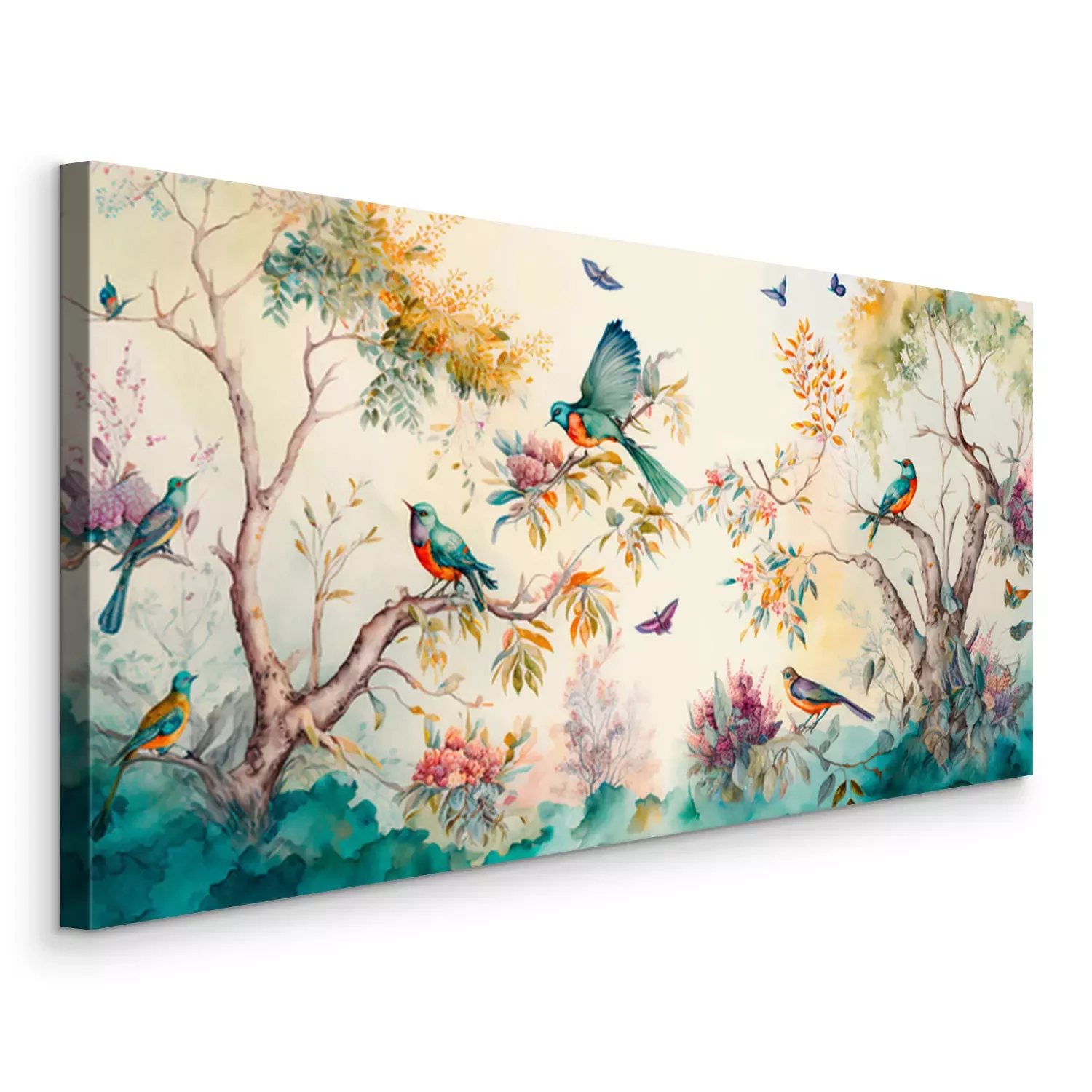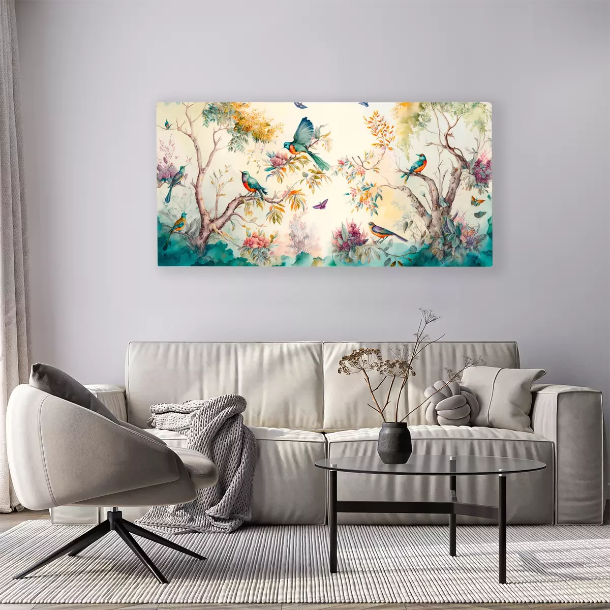 Tableau  Jardin paradisiaque d'oiseaux colorés