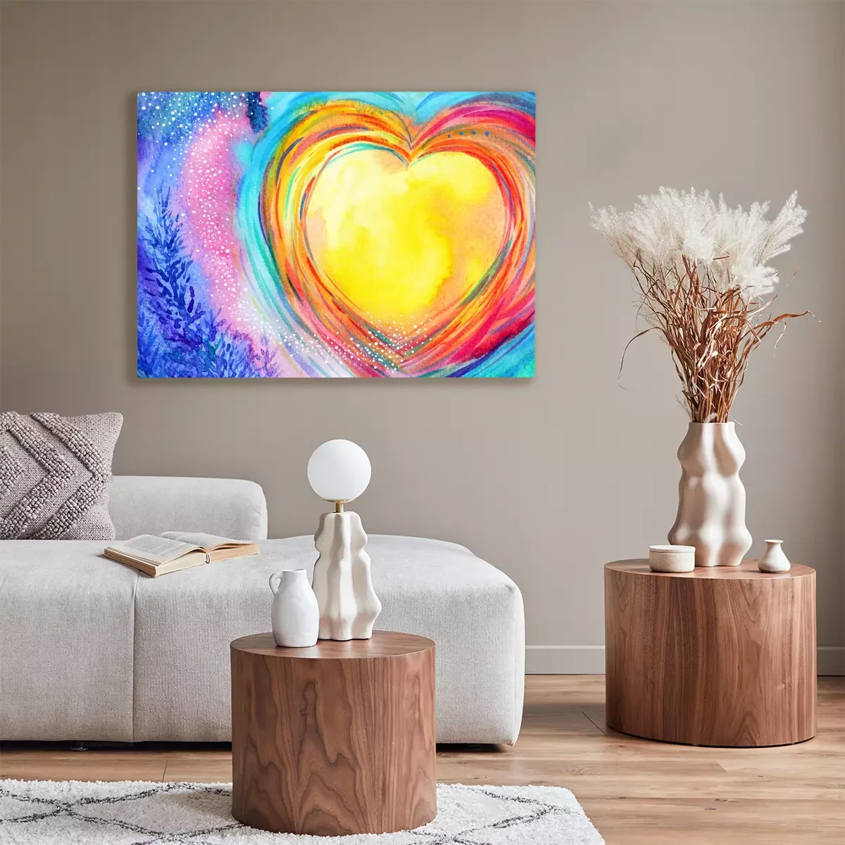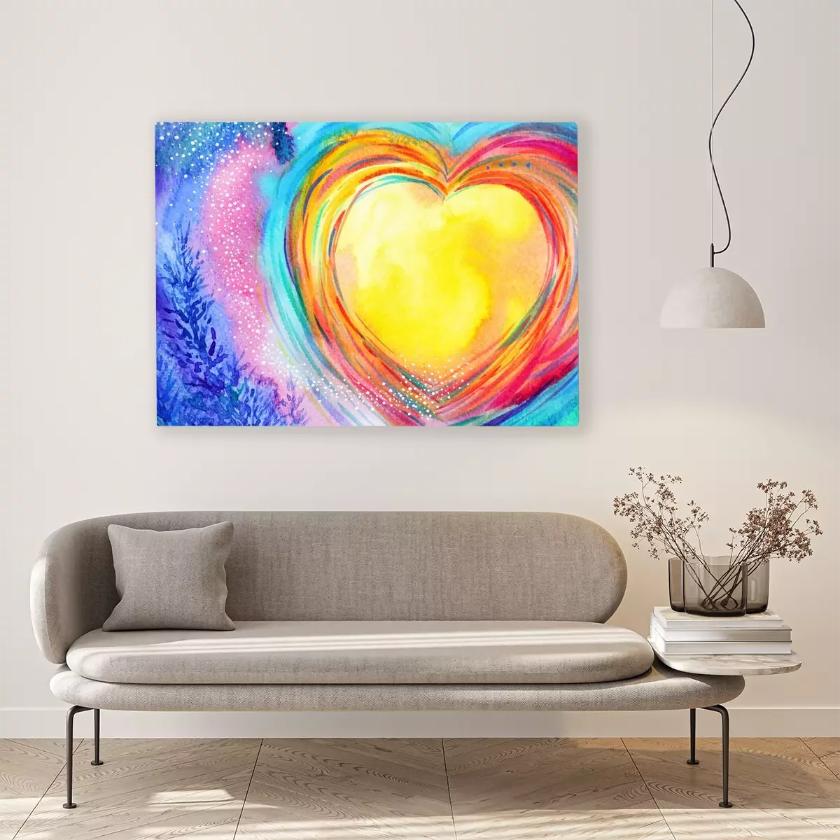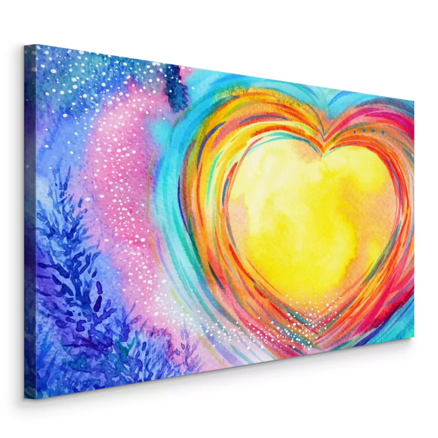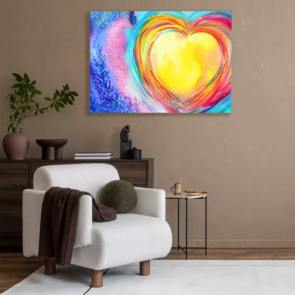 Tableau  Jaune, lune, coeur, aquarelle, peinture, illustration, conception, valentines, jour